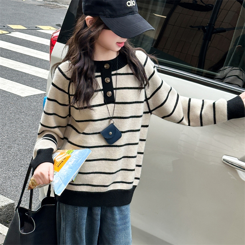 女童秋冬款加厚毛衣条纹针织衫潮