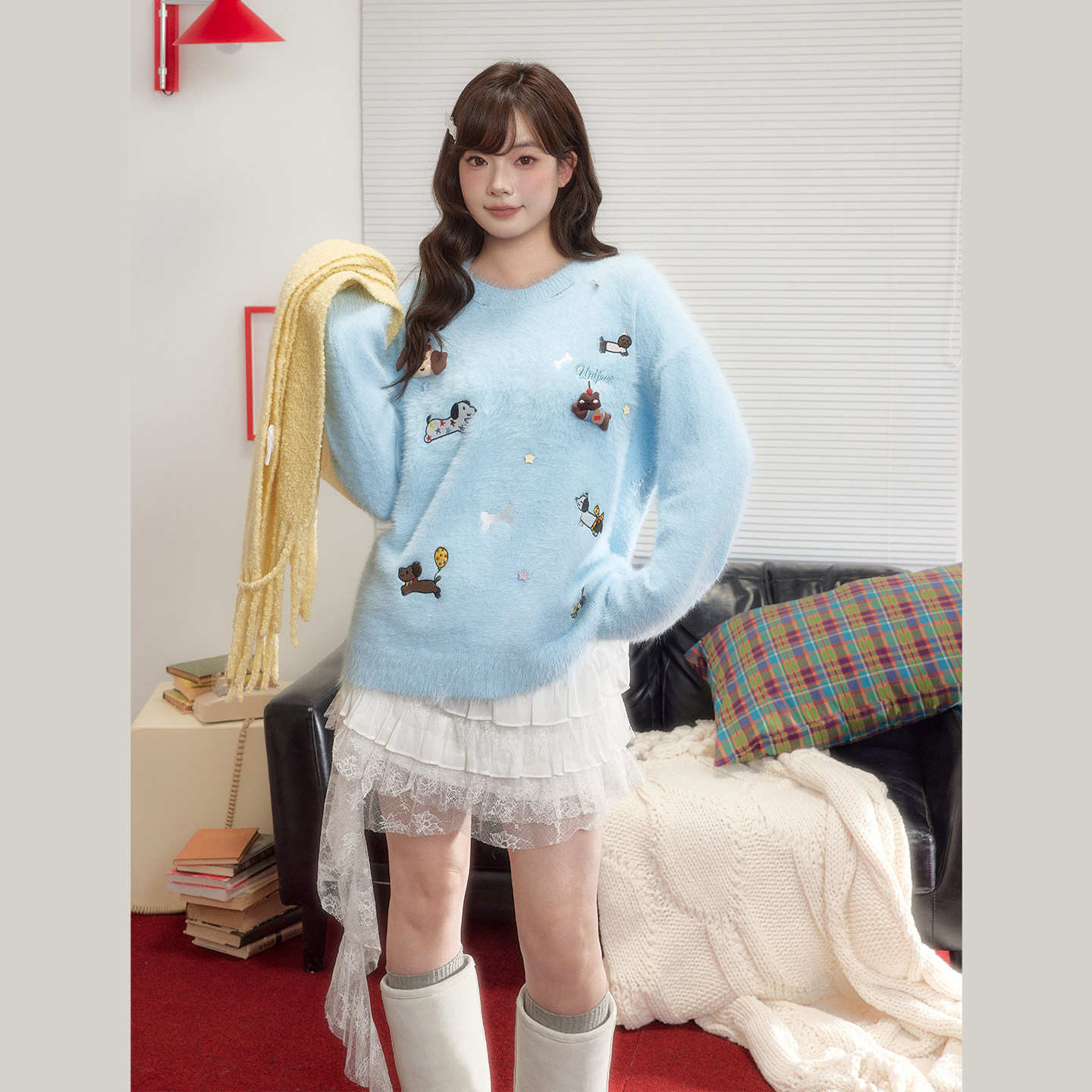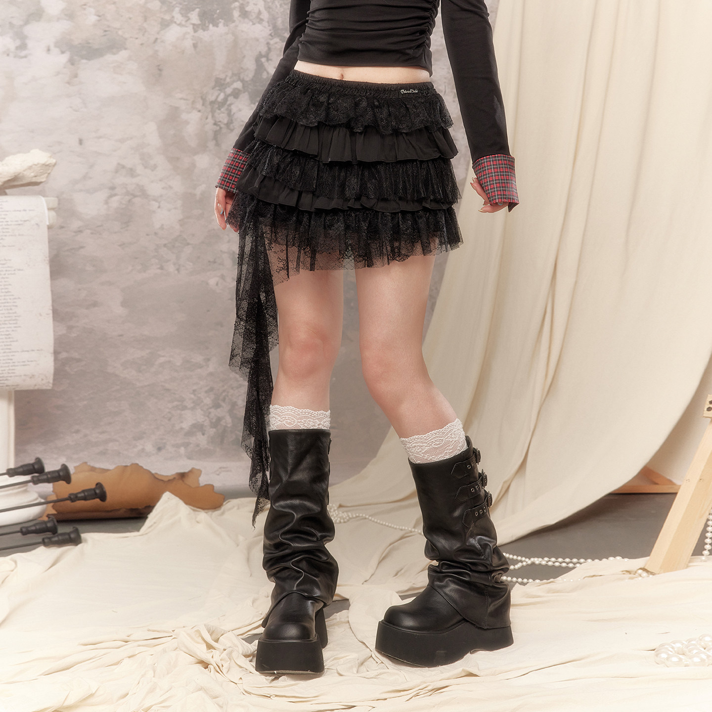 UNIFREEPLUS白色蕾丝半身裙大码女装新款不规则多层蓬蓬裙蛋糕裙