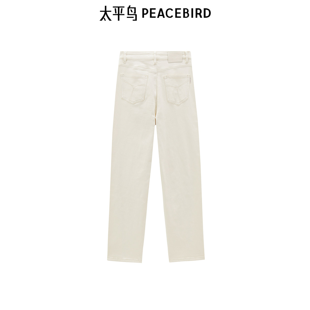 太平鸟女装春季时尚绣花直筒牛仔裤A1HAE3215