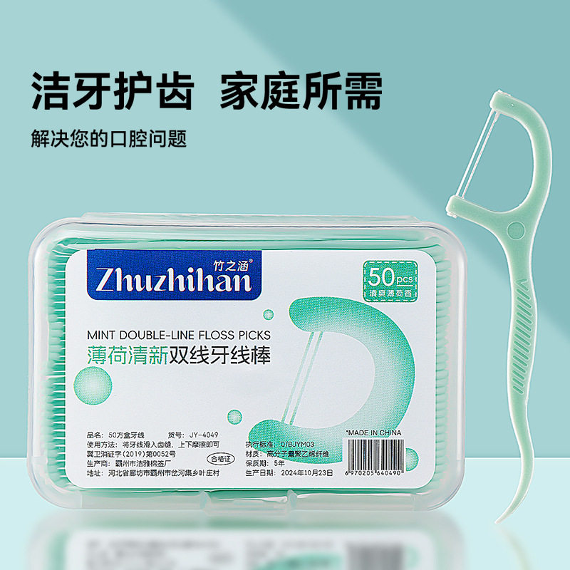 薄荷味双线牙线棒家庭装超细弓形盒装一次性牙线牙签剔牙口腔清新