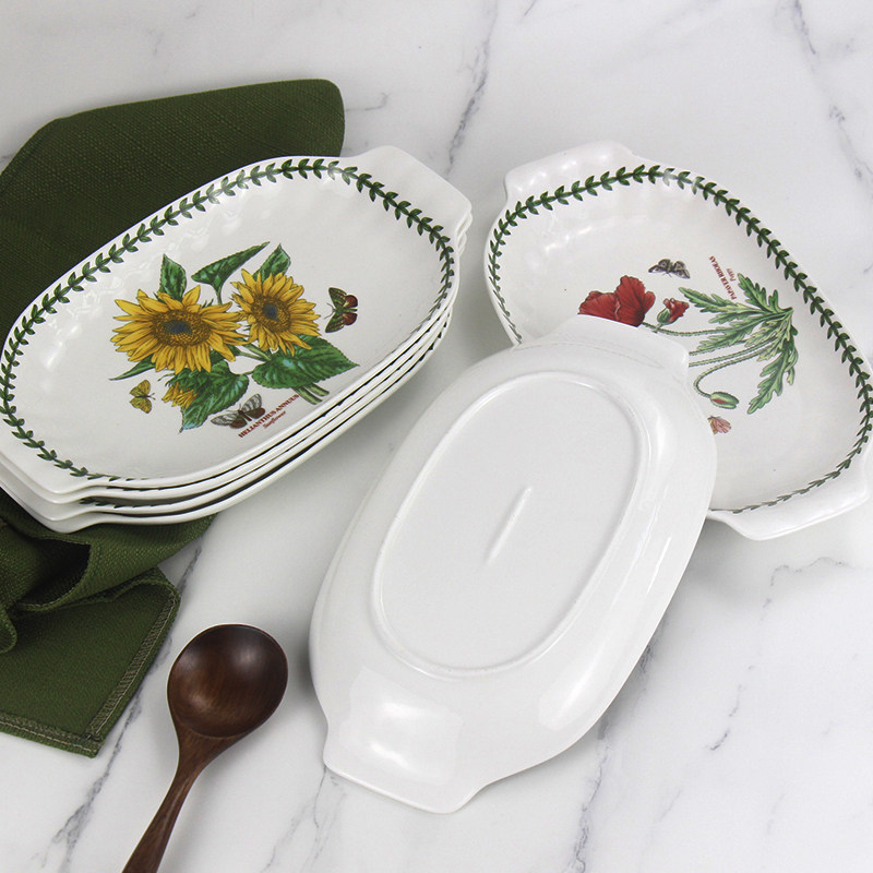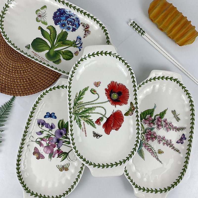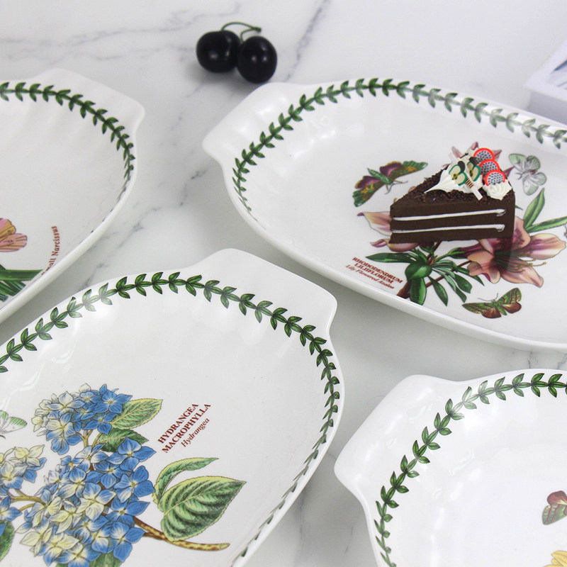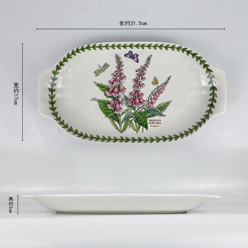 波特美林双耳陶瓷盘子植物花草园