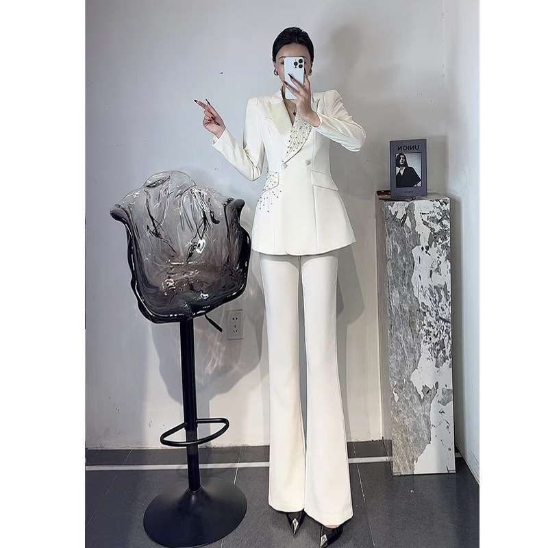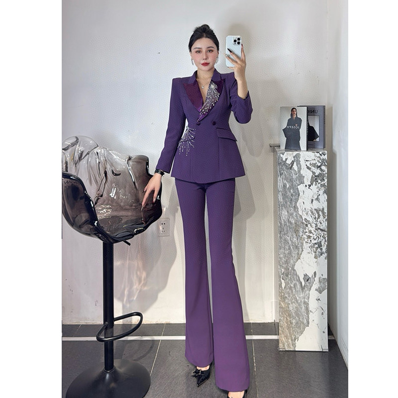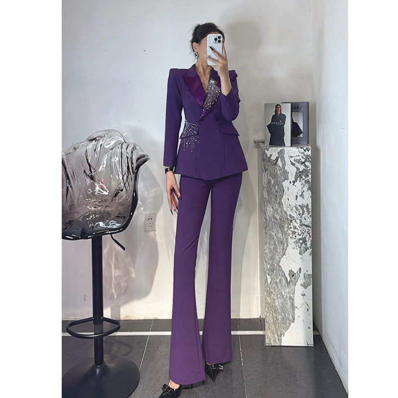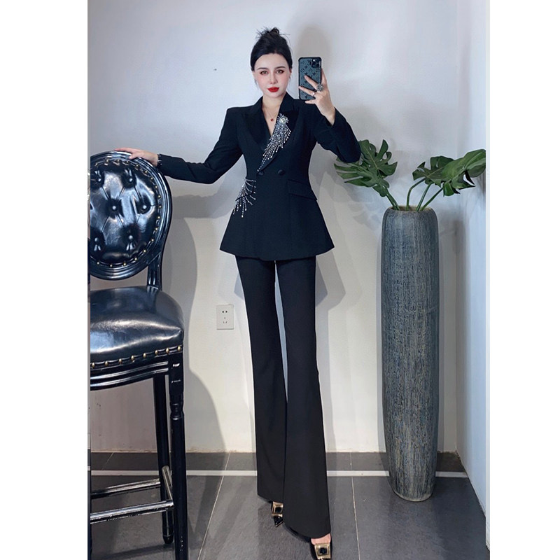 重工烟花订钻修身西服套装商务职业女装西装外套微喇显瘦裤两件套
