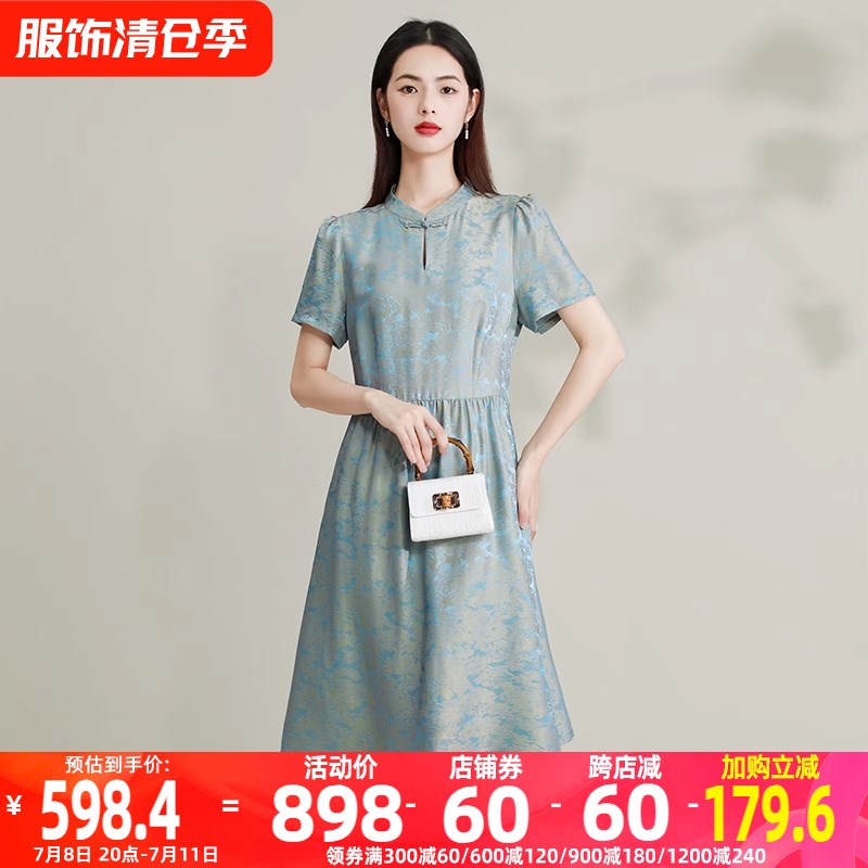 速发杭州真丝连衣裙2024年夏日新款小众设计法式轻熟长裙