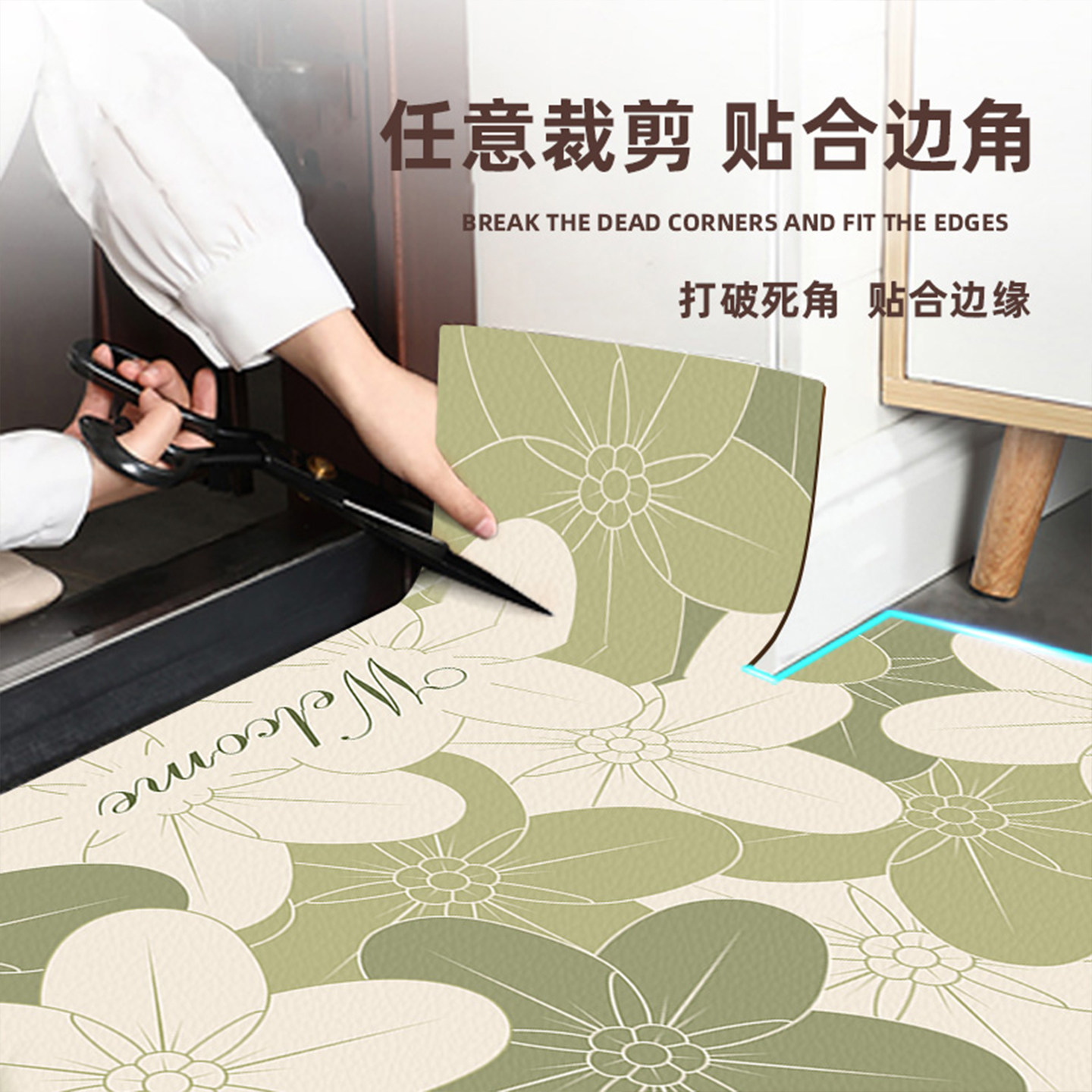 入户门地垫绿色门口进门脚垫pvc皮革门垫可擦洗防滑垫子家用地毯