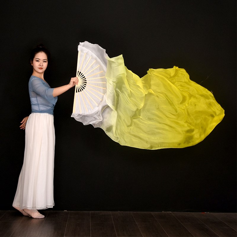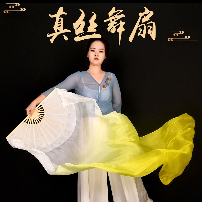 速发真丝舞蹈扇子中国风双面加长黄色长飘古典舞演出道具跳舞长绸