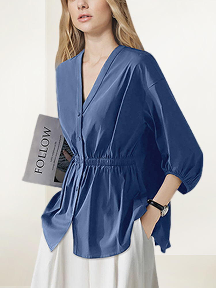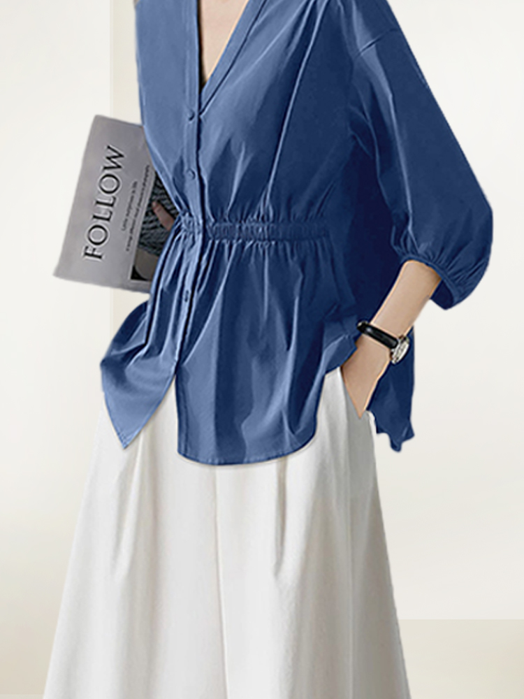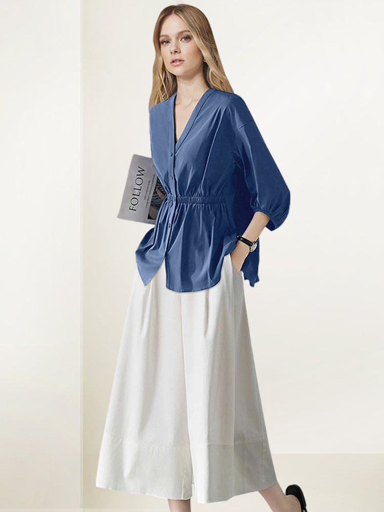 洋气显瘦套装女2025年秋装新款V领衬衫白色阔腿裤宽松减龄两件套