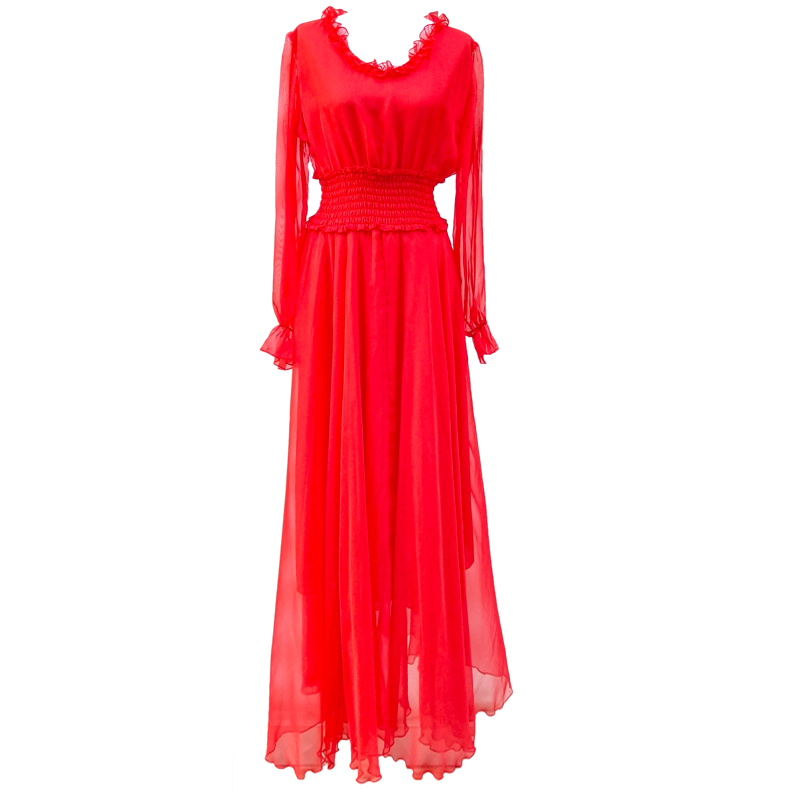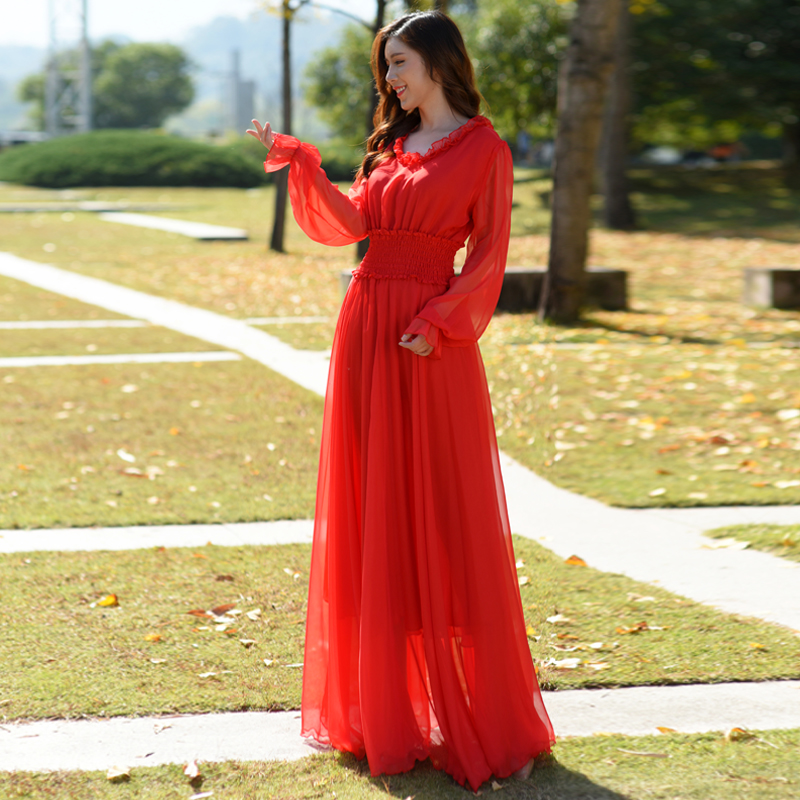 红色连衣裙长款过脚踝夏显瘦雪纺修身及踝长裙拖地大摆超长沙滩裙