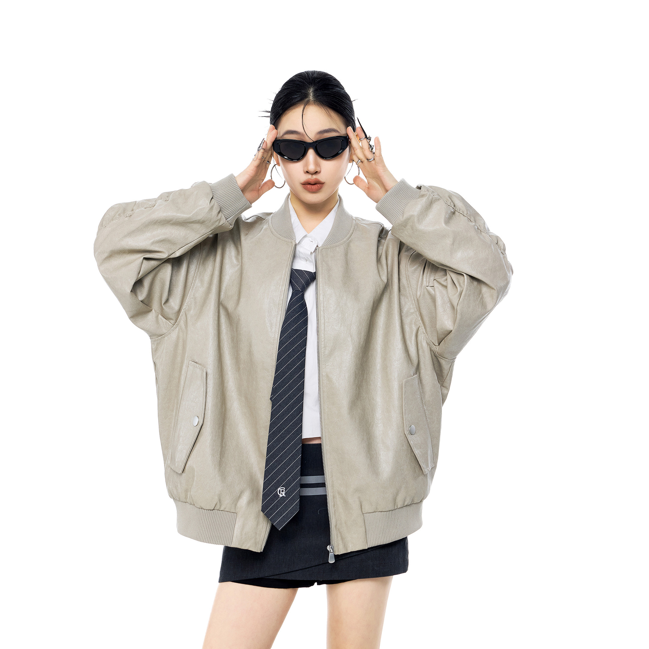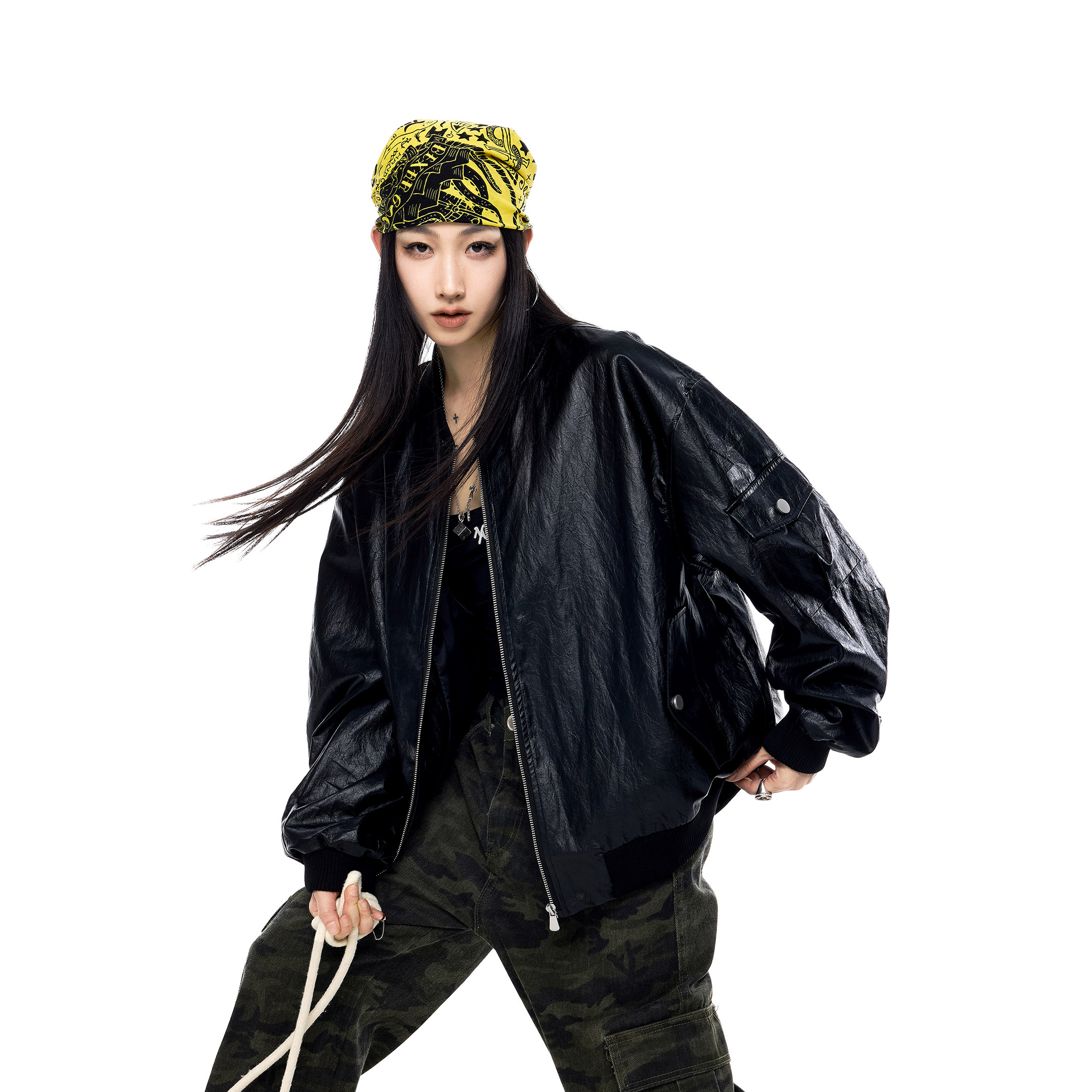 ICH MODE 美式PU皮外套女2026春季新款棒球服工装皮夹克复古上衣