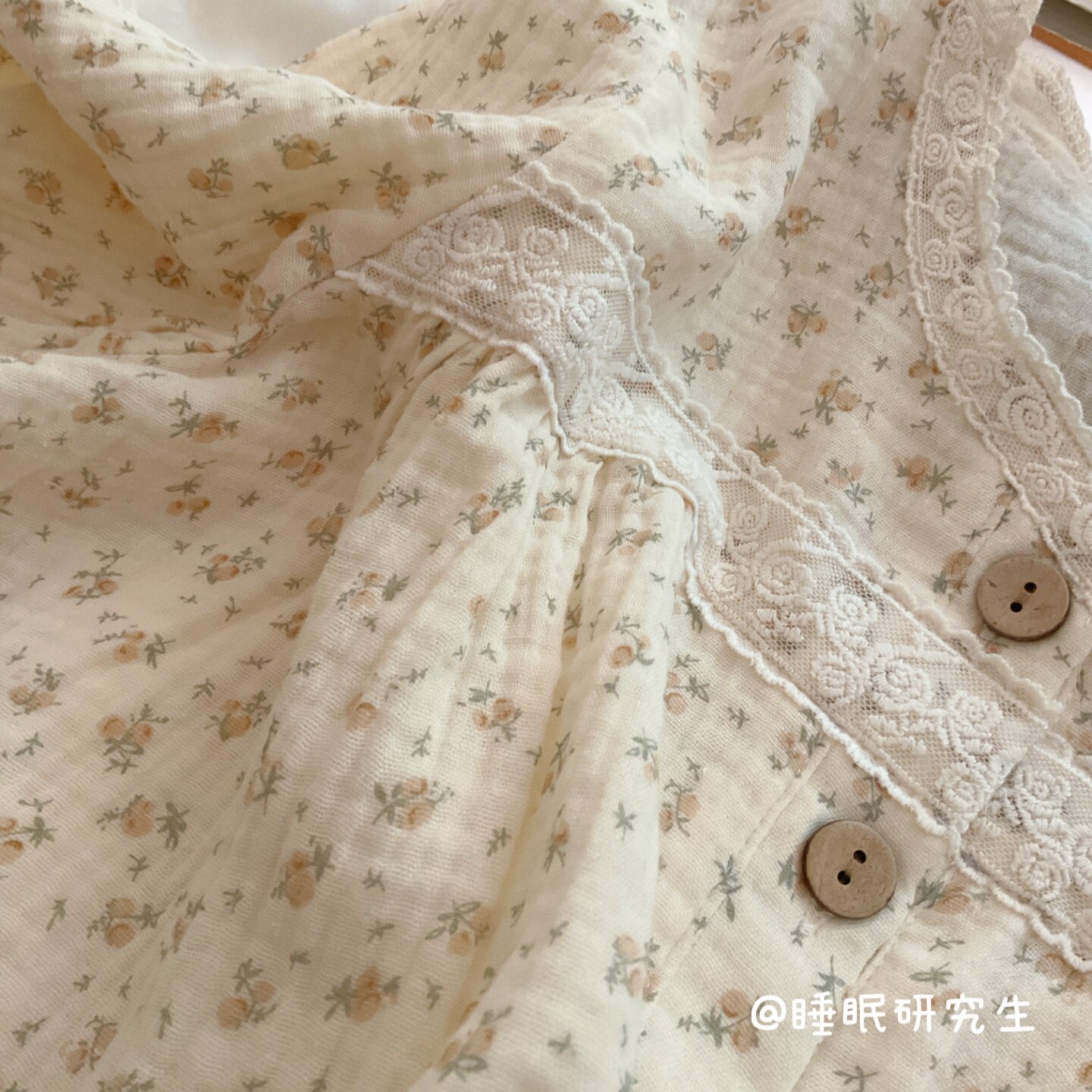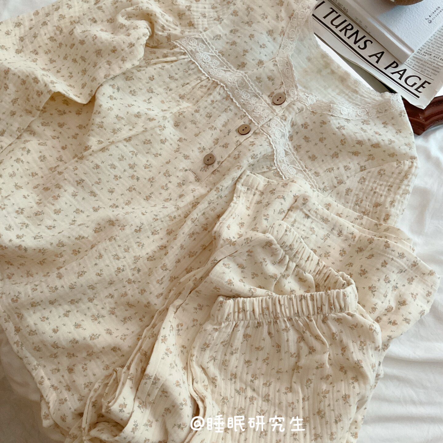 【小春日和】春夏季女睡衣软料双层纱日系碎花家居服纯棉套装圆领