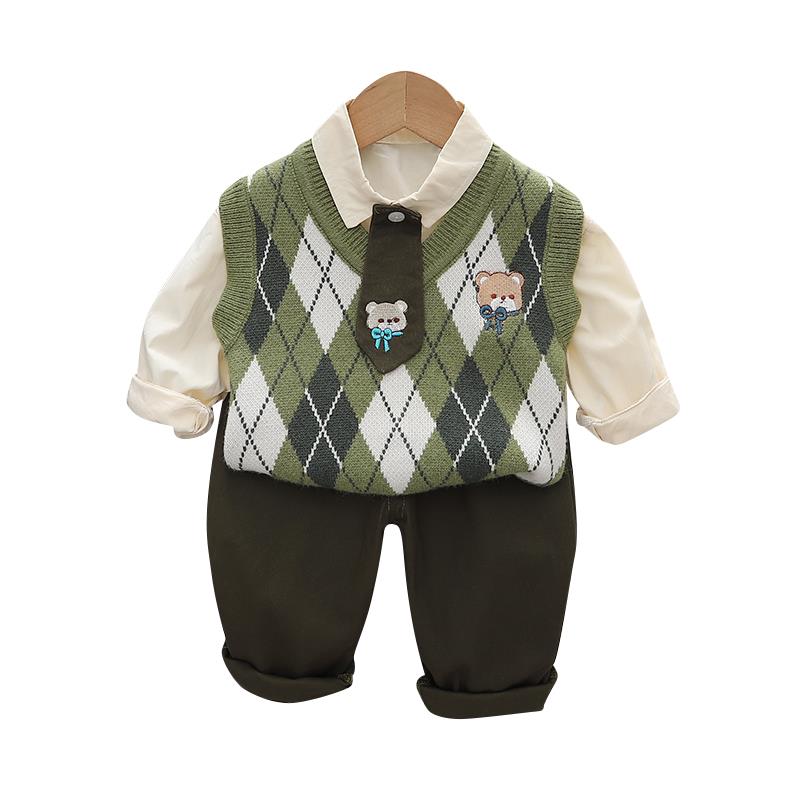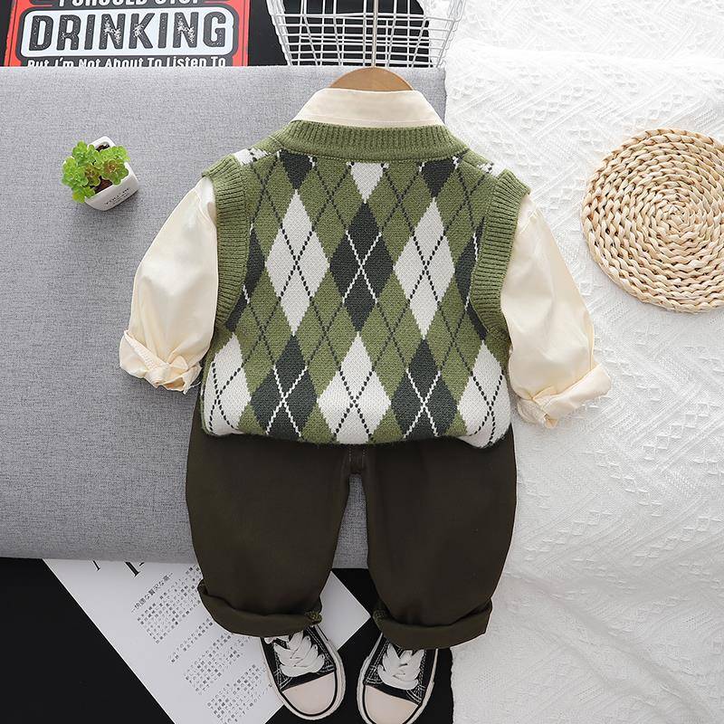 男童秋季套装2024新款洋气儿童学院风毛衣马甲三件套宝宝春秋潮款