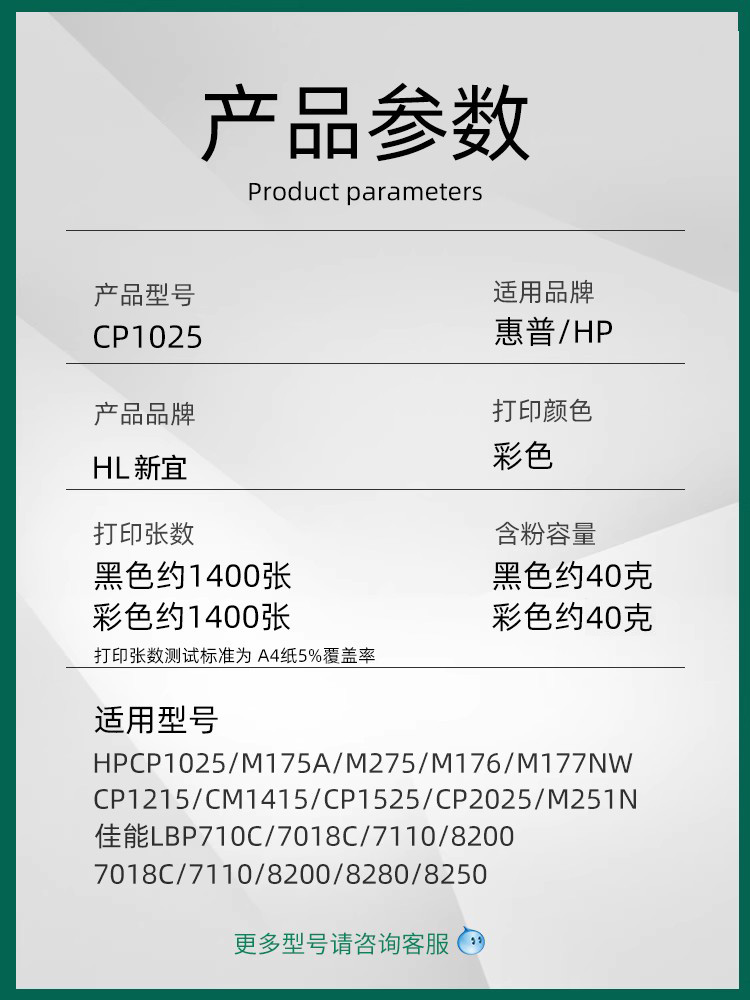HL适用惠普1025碳粉 HPM175 M176N M177打印机墨粉 CP1215 M251 M351 1415 CF210A CE310A CF350A彩色粉
