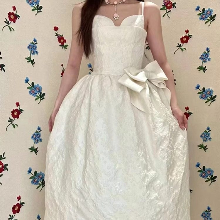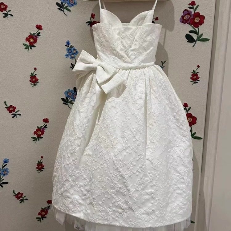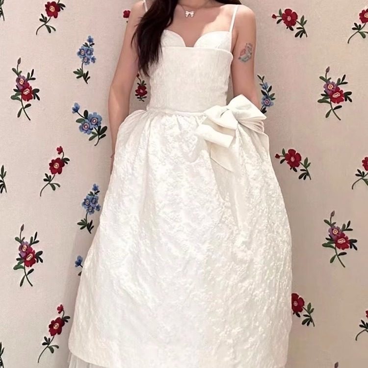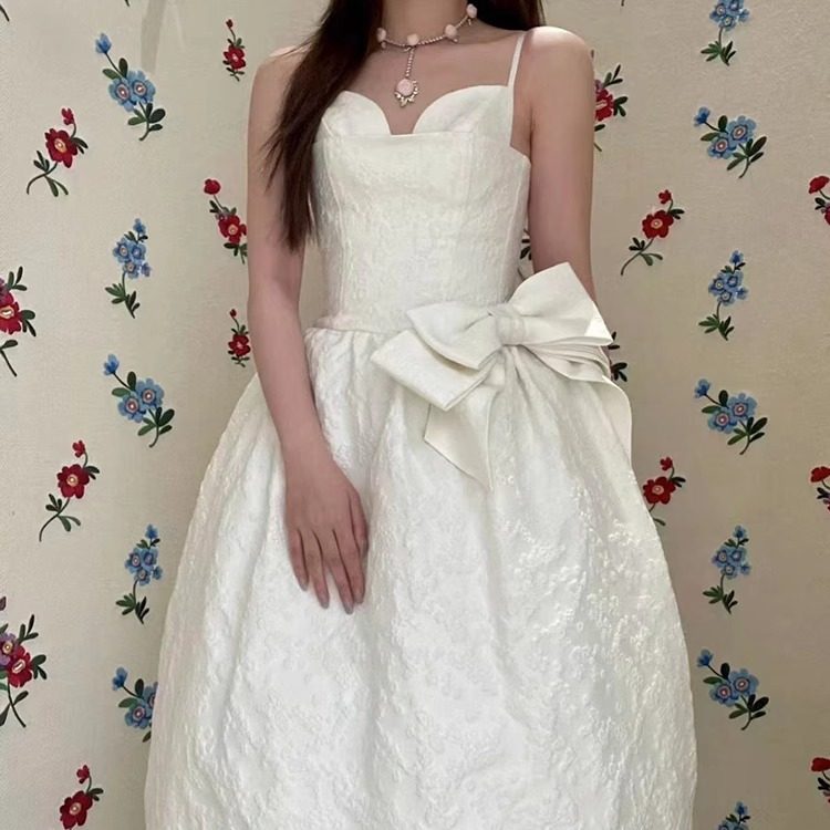 TEshushu千金风蝴蝶结装饰网纱拼接连衣裙无袖收腰背心吊带蓬蓬裙