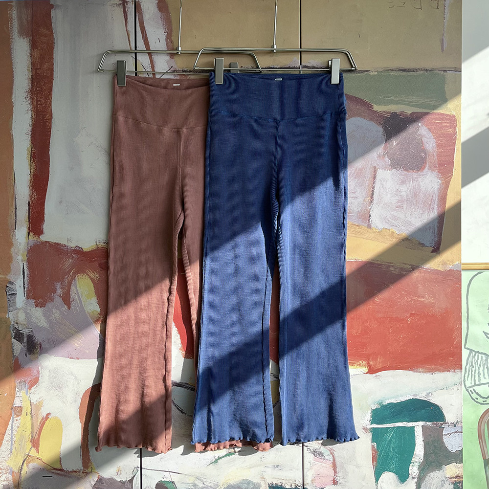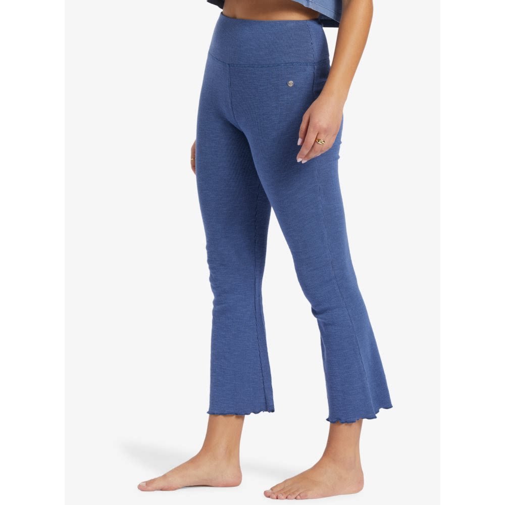 原单Rox*y Zuma Knit高腰针织喇叭裤坑条纹大弹力罗纹微喇裤9分裤