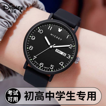 迪士尼手表女款学生高颜值初高中生考试专用夜光防水机械静音男款