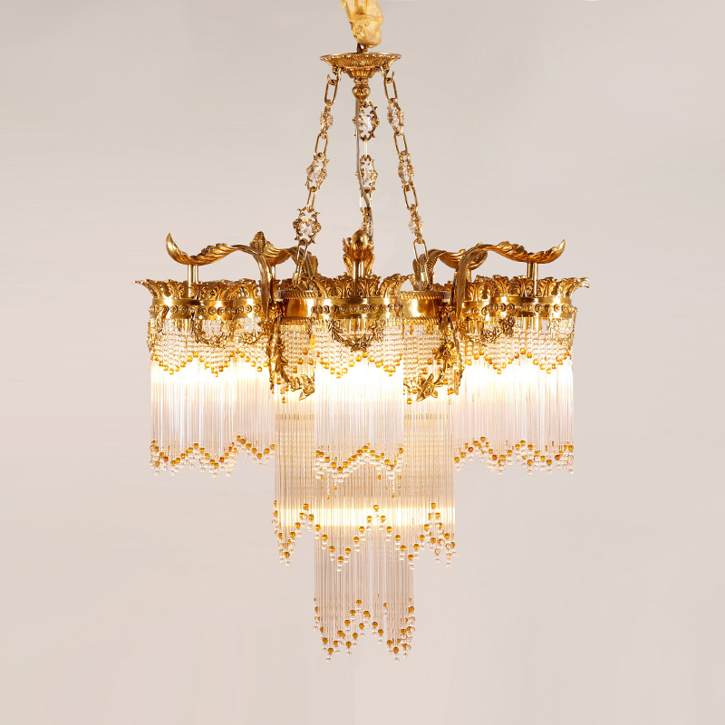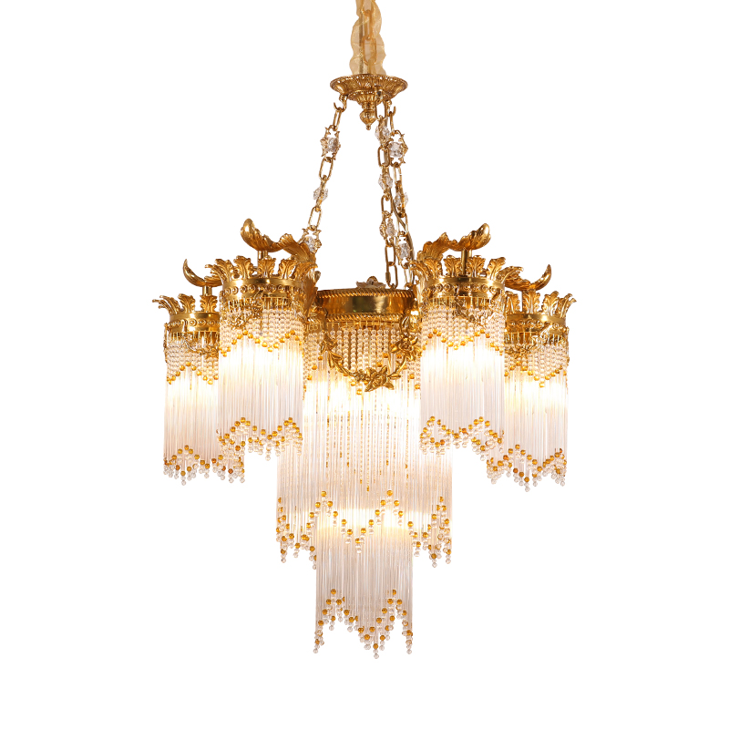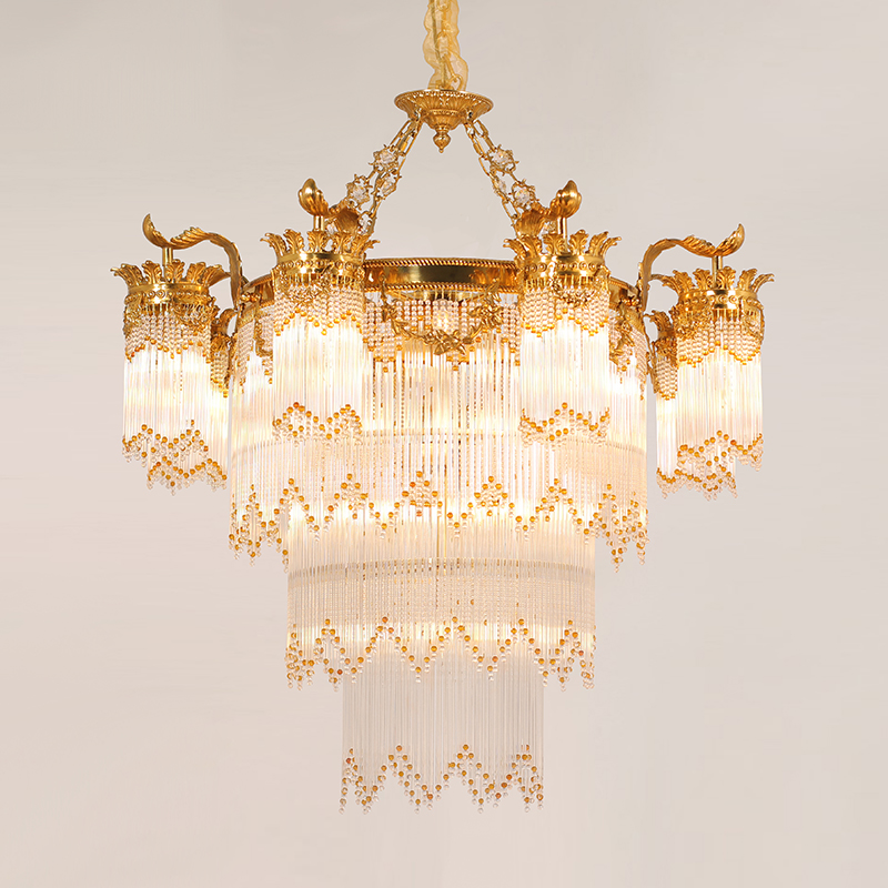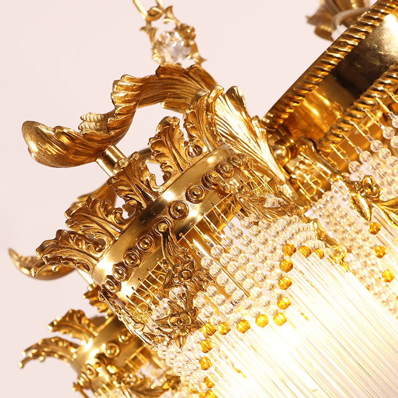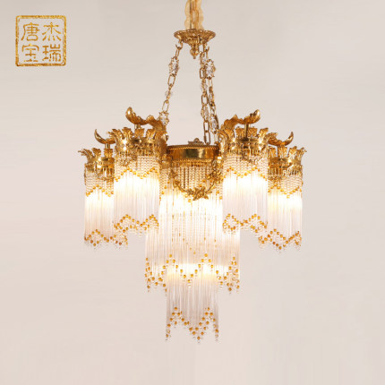 全铜客厅大气吊灯欧式法式餐厅楼梯酒店别墅脱蜡工程纯铜水晶灯具