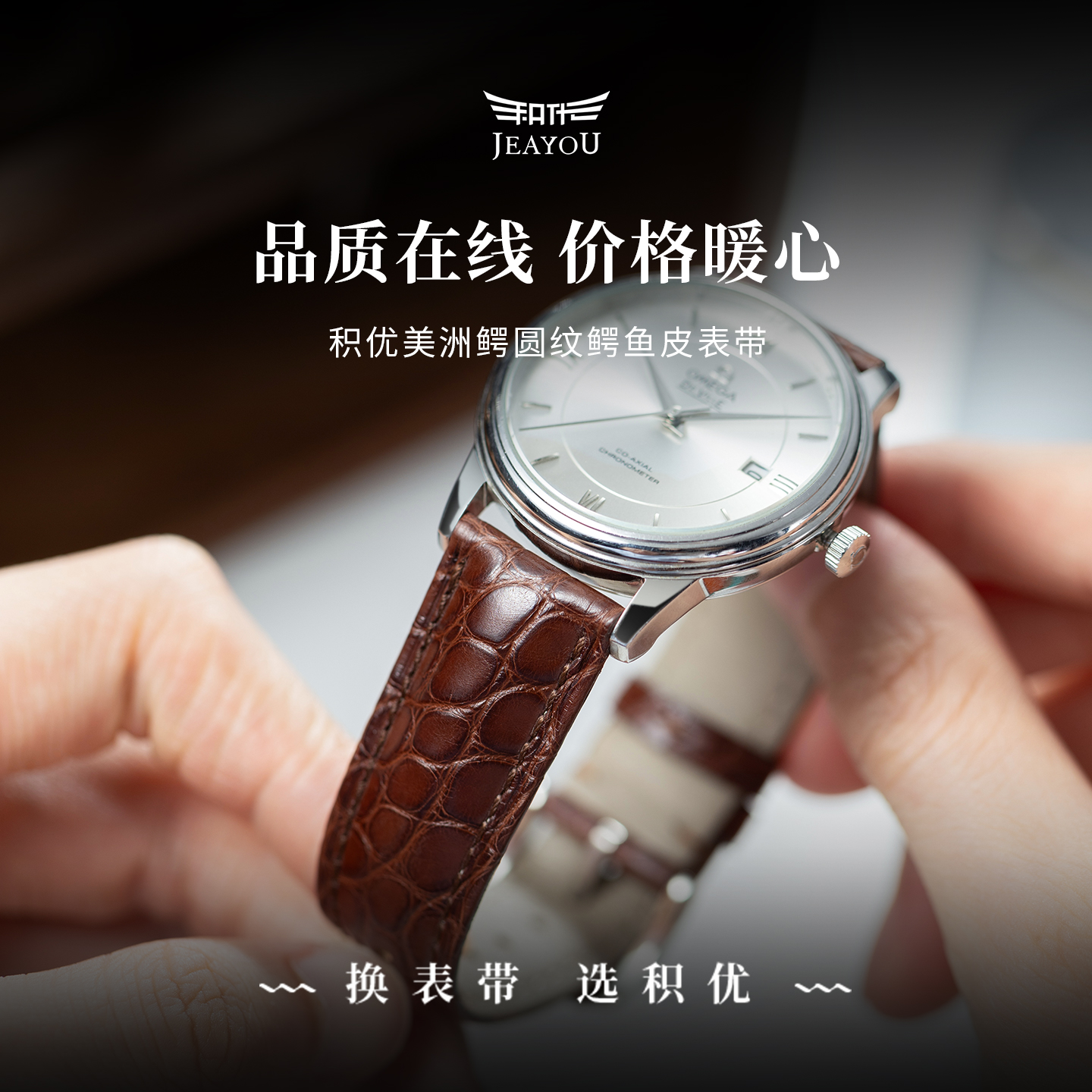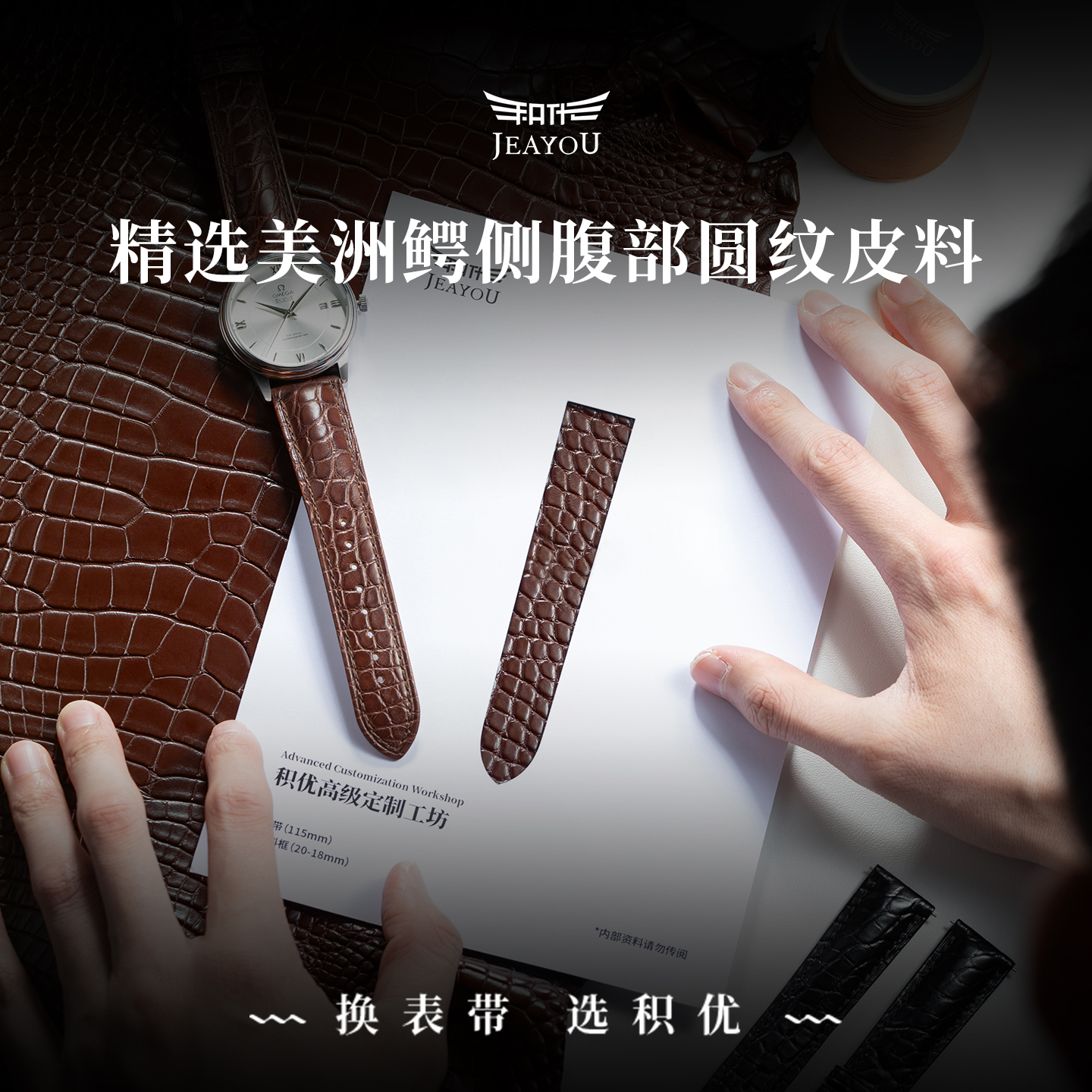 积优圆纹美洲鳄鱼皮手表带适用欧米茄万国浪琴天梭美度海鸥表带女