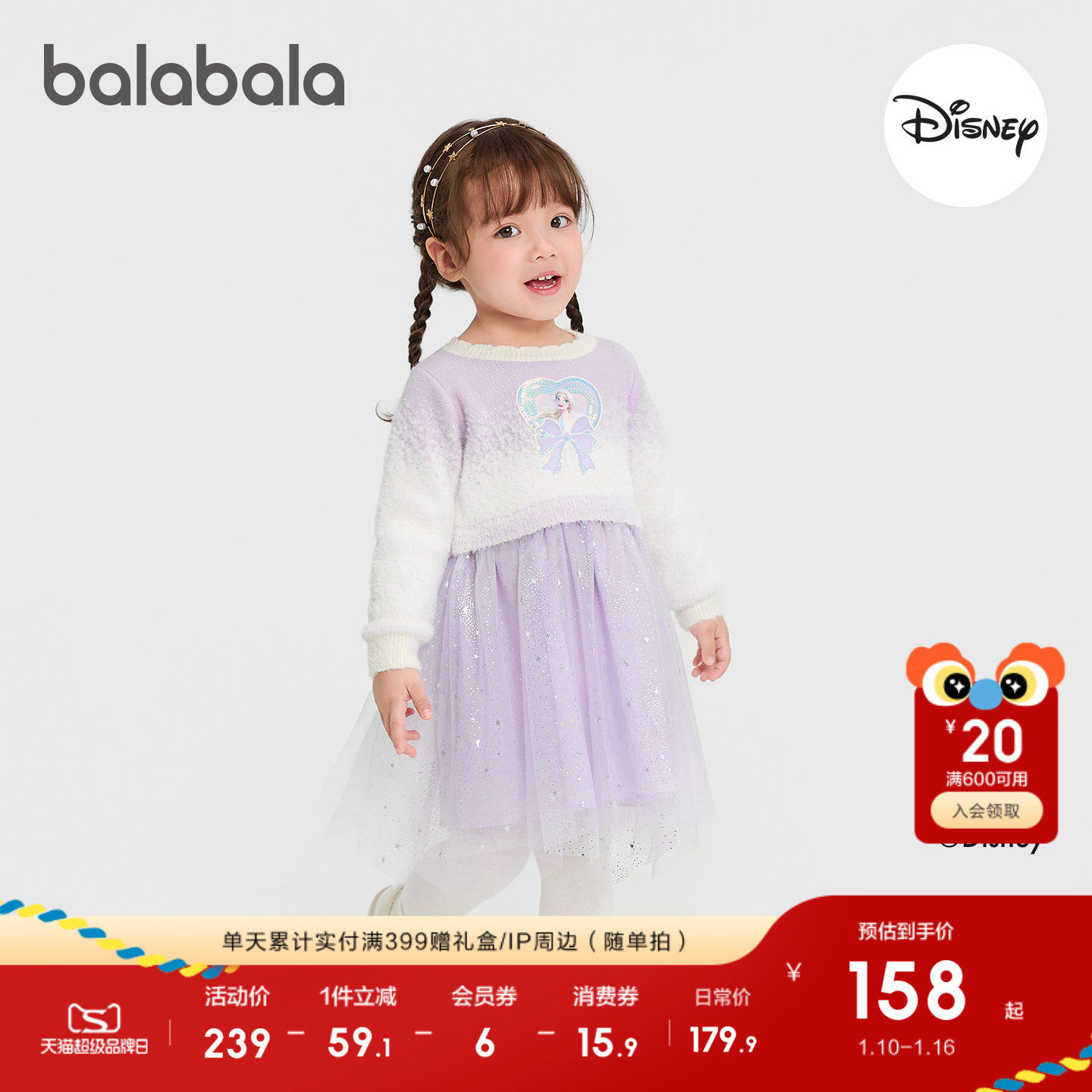 【迪士尼IP】巴拉巴拉女童连衣裙2025冬装新款针织女童公主网纱裙