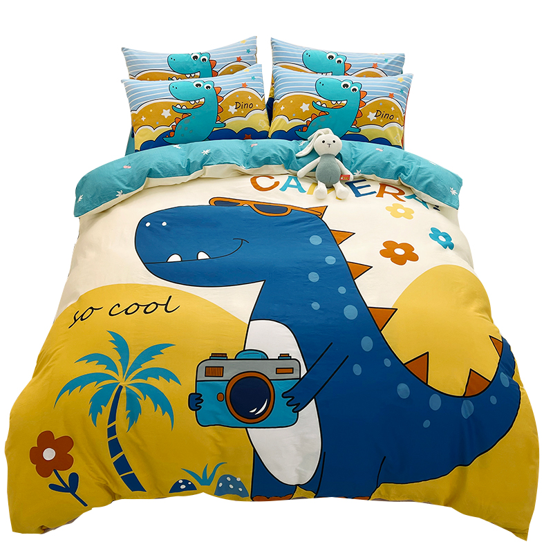 卡通四件套100全棉儿童男孩女孩被套床单人可爱恐龙床上用品4