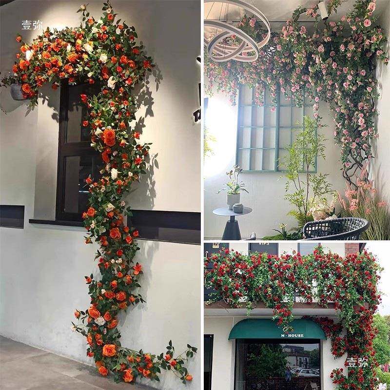 假2.蔓2米花藤玫瑰花花绢花藤瀑布网红墙花绿植tlznsdlz管道遮挡