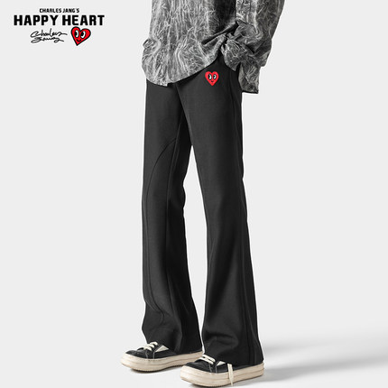 查尔斯桃心 美式拼接休闲裤子男女春秋高街显瘦情侣微喇弯刀长裤