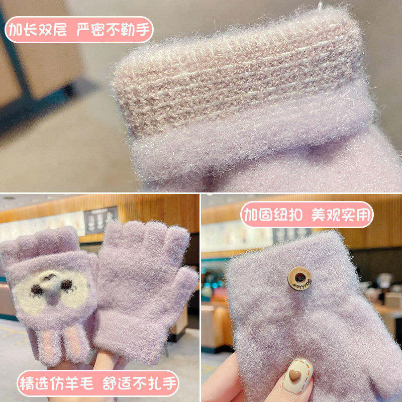 儿童小手套宝宝半指套女童男孩冬季学生保暖防风婴幼儿一岁露五指