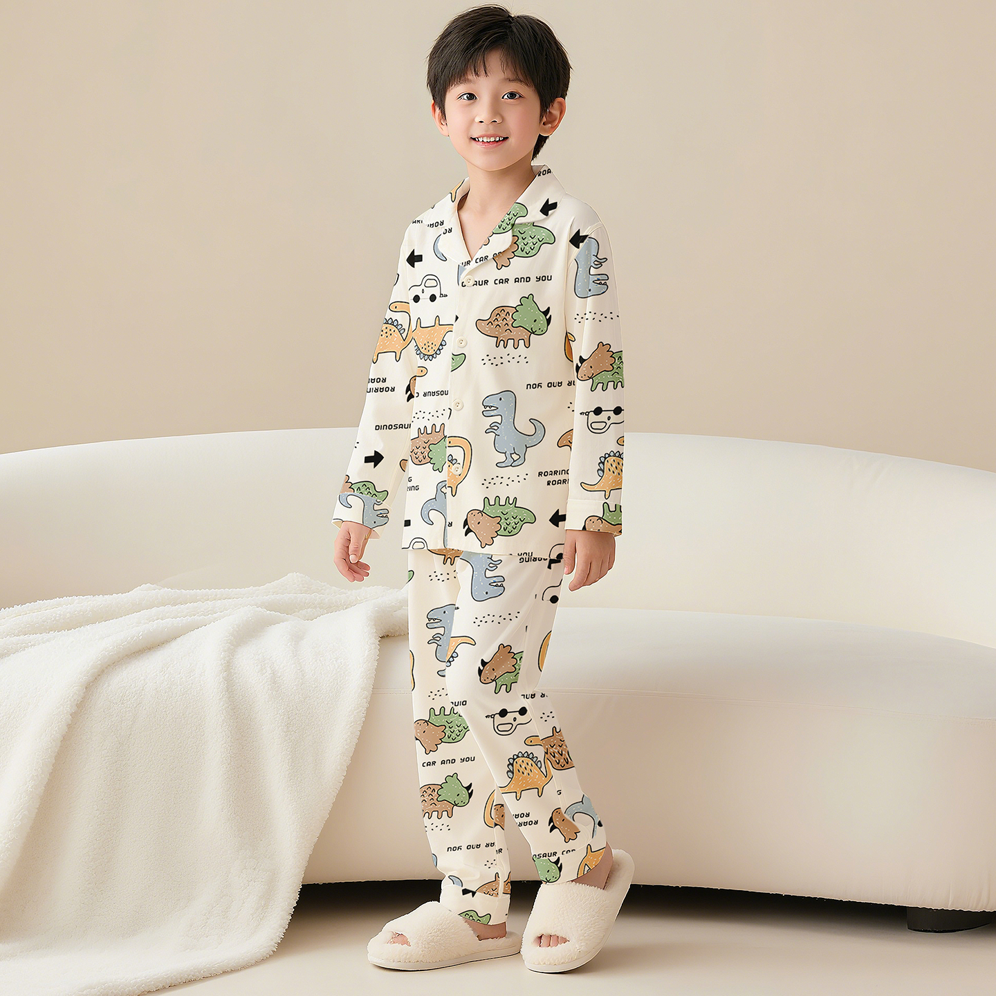 芬腾男童睡衣纯棉卡通恐龙家居服