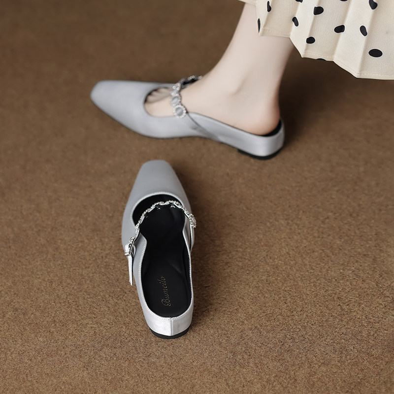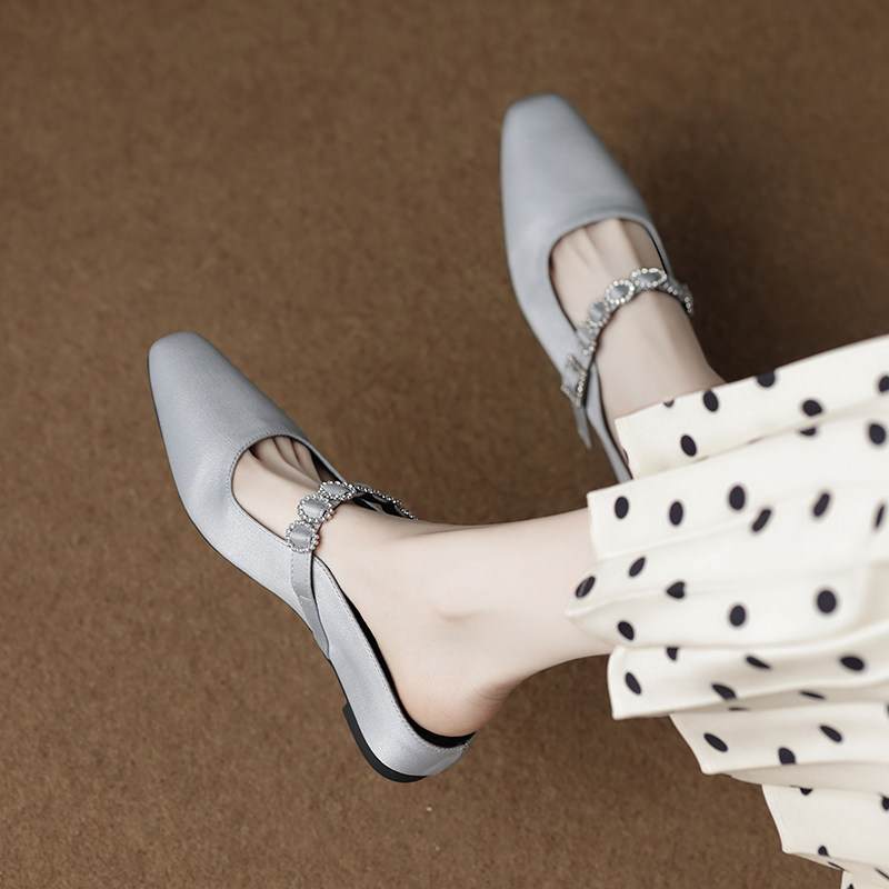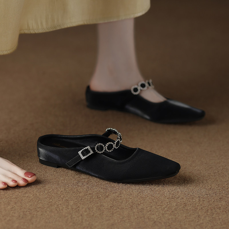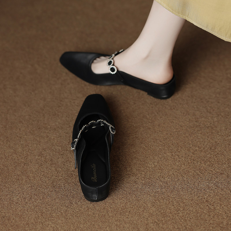 包头拖鞋女夏外穿2025新款开春单鞋法式玛丽珍水钻半拖配裙穆勒鞋
