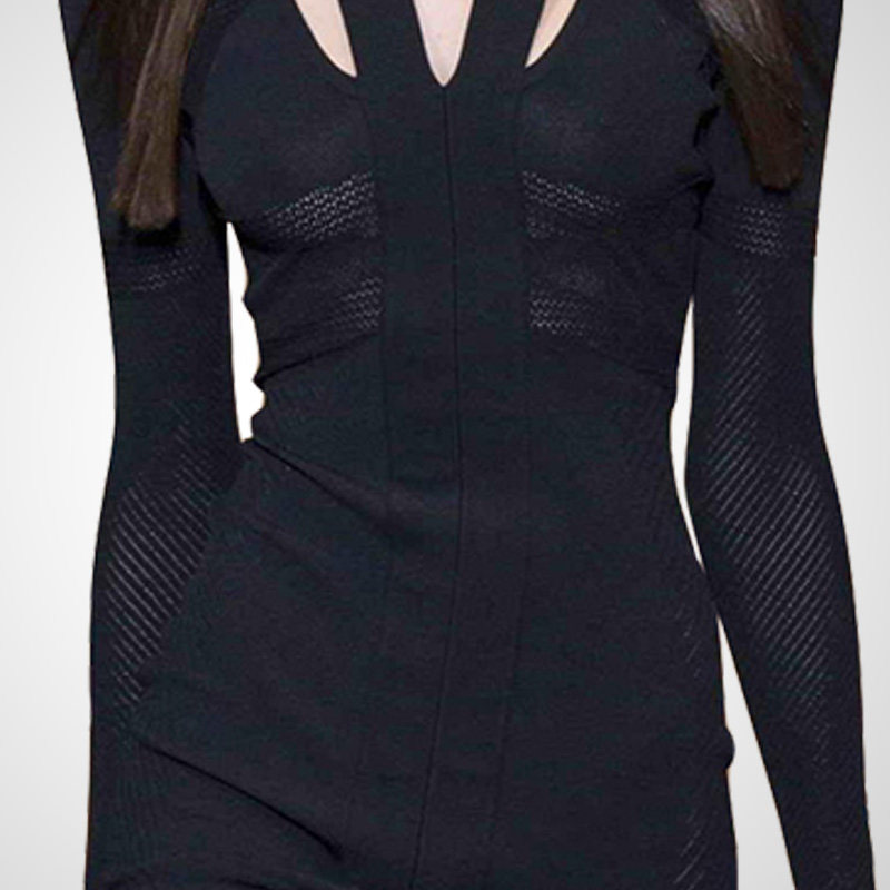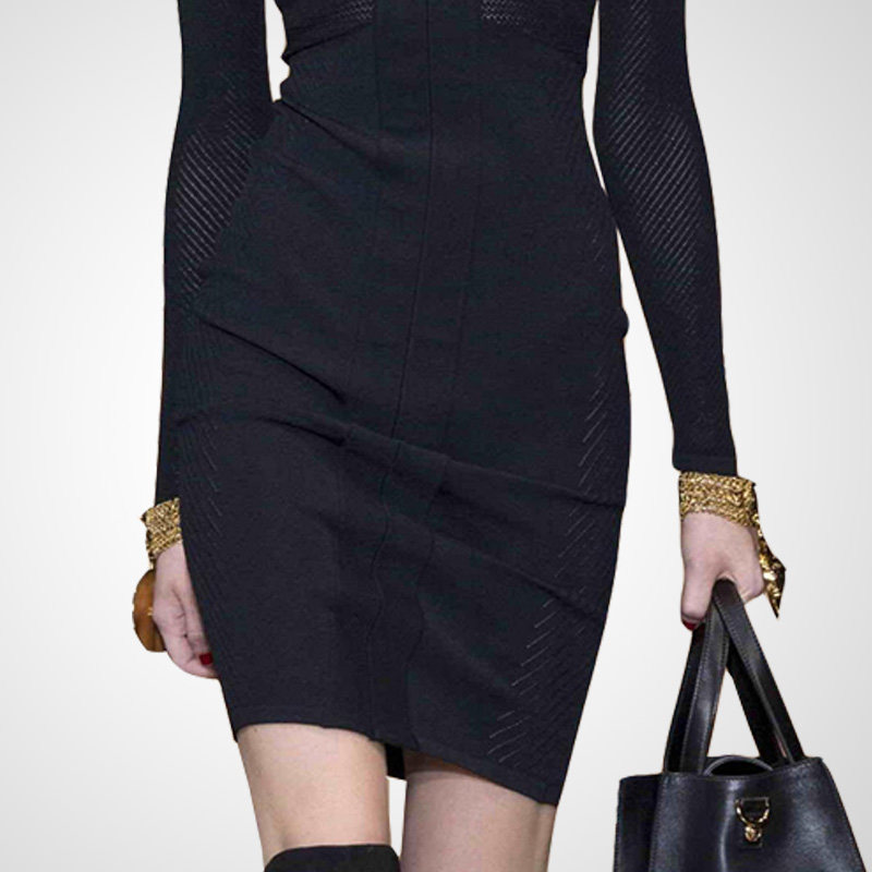 2025秋冬新款女装黑色针织连衣裙中长款收腰显瘦气质打底毛衣裙子