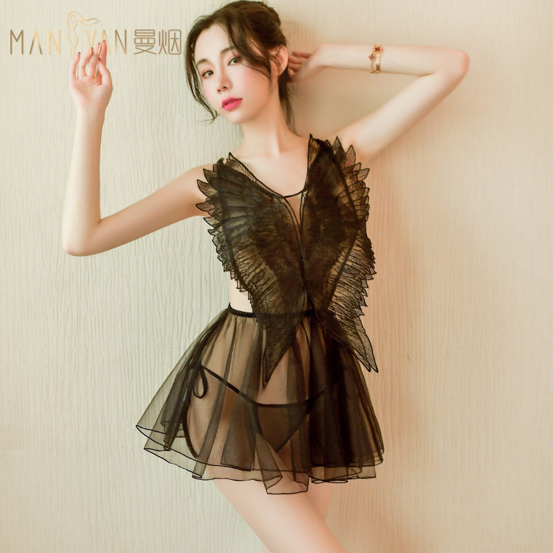 性感透视装蝴蝶内衣女天使翅膀套装可爱免脱睡衣短裙