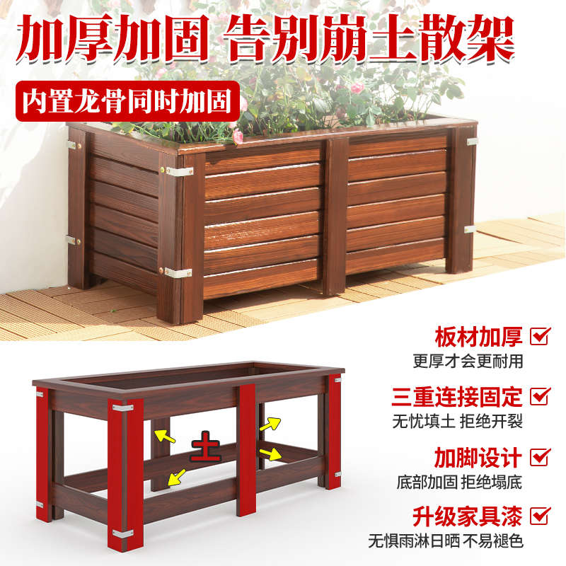防腐木花箱户外花盆庭院阳台长方形碳化专用种植箱室外天台种菜盆