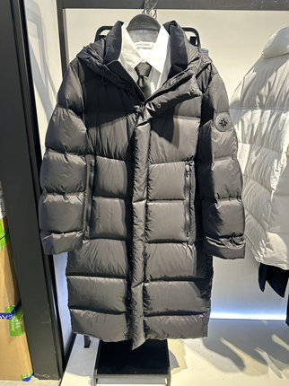 B1ACE4443 太平鸟男装2024冬季新款黑宽松休闲连帽长款保暖羽绒服