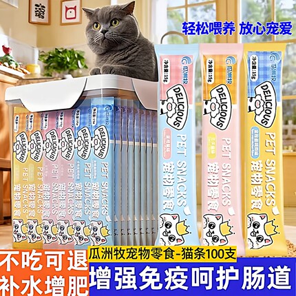 瓜洲牧宠物全价猫条主食零食三文鱼金枪鱼鸡肉猫条饭补水增肥湿粮