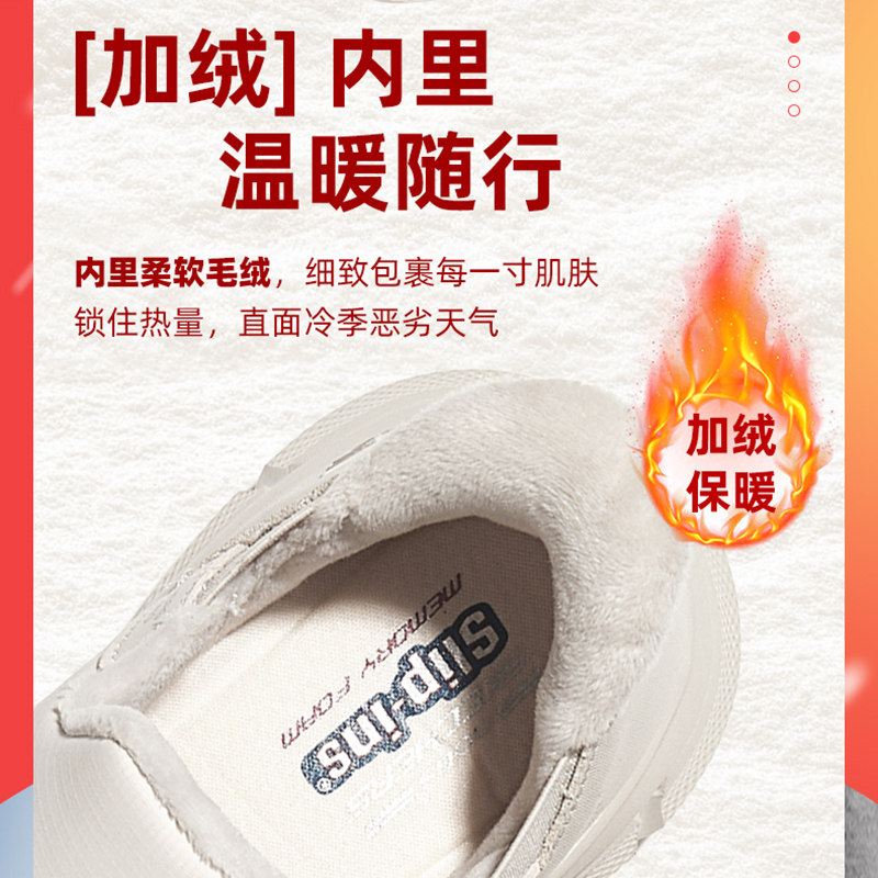 Skechers斯凯奇加绒女鞋一脚蹬穿脱冬季舒适休闲运动鞋保暖老人鞋