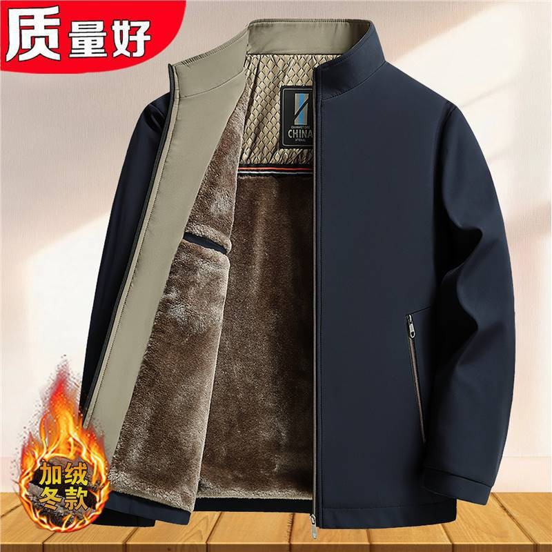 厂家直供冬季男士棉服立领夹克衫中老年加绒加厚保暖爸爸冬装外套
