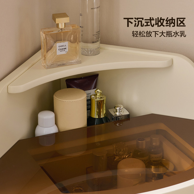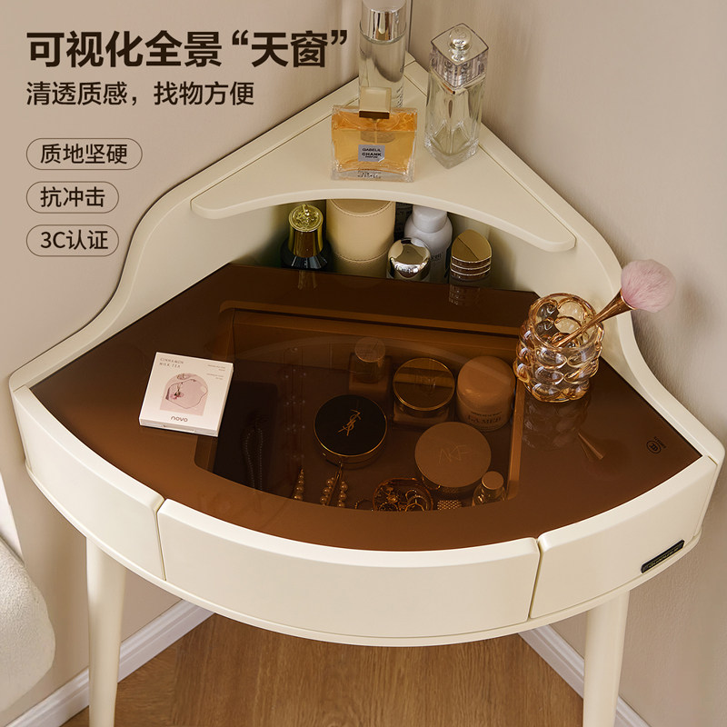 全友家居奶油风小户型卧室转角梳妆台2025新款家用小型收纳化妆桌