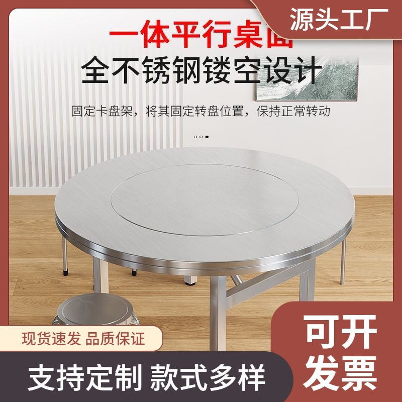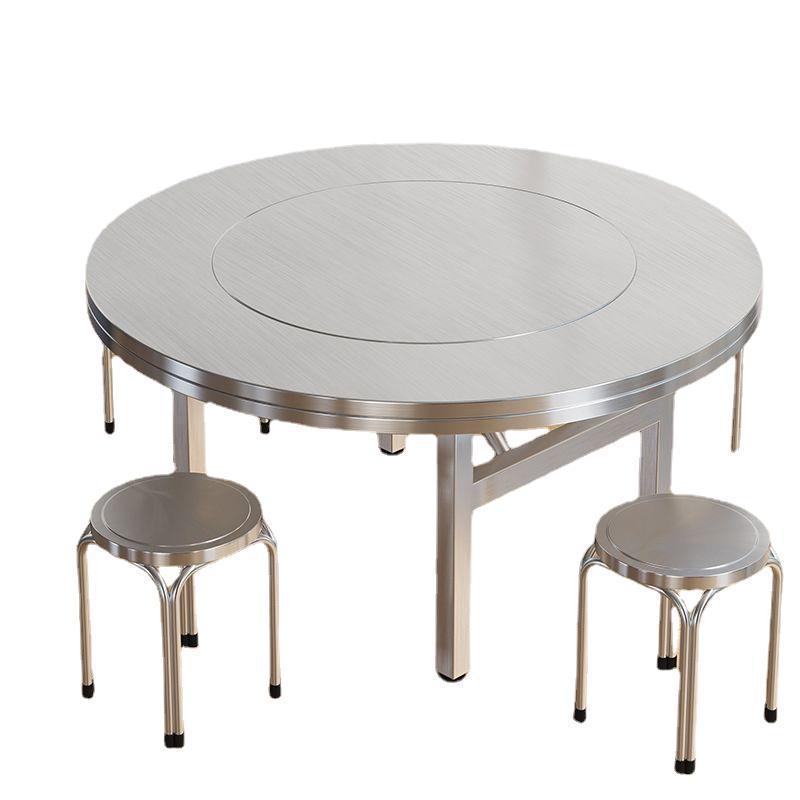 加厚全不锈钢圆桌子一体包边吃饭台面餐桌简约可拆卸折叠加固桌脚