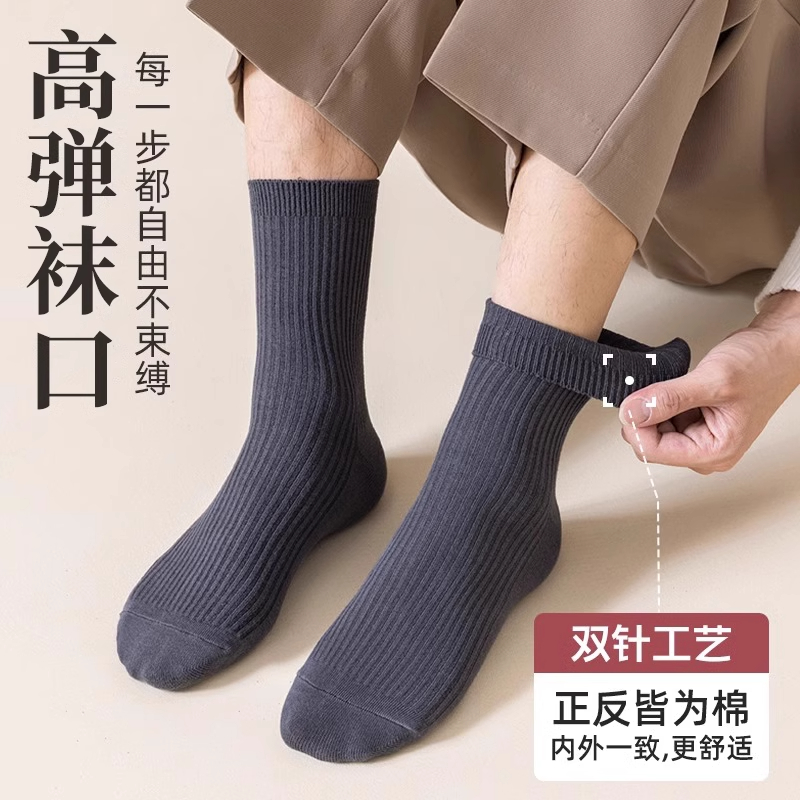 纯棉袜子男款中筒袜秋冬季男士运动袜全棉防臭吸汗透气黑白色长袜