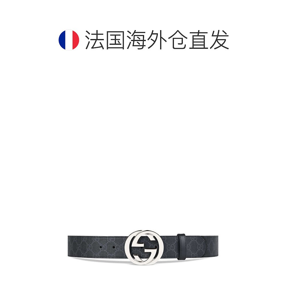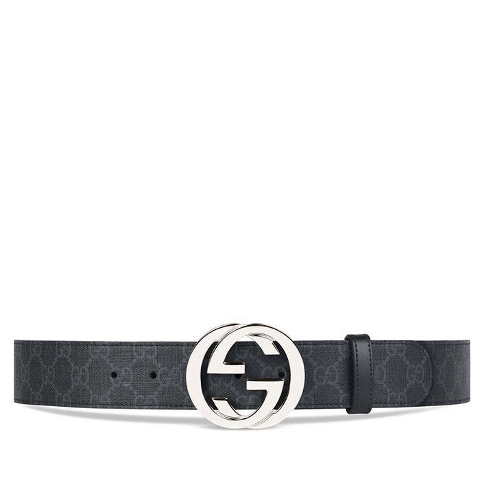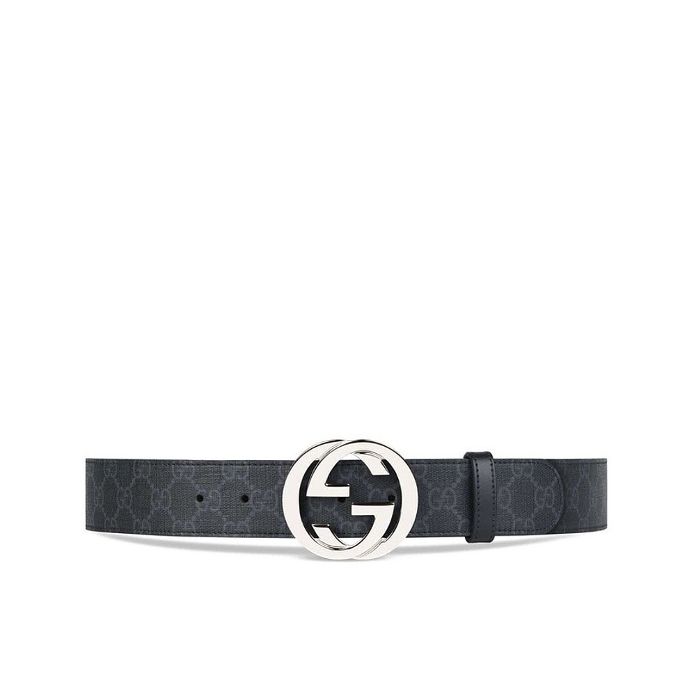 自营GUCCI/古驰 经典款男士黑色帆布银色双G扣腰带 宽度4CM 41192