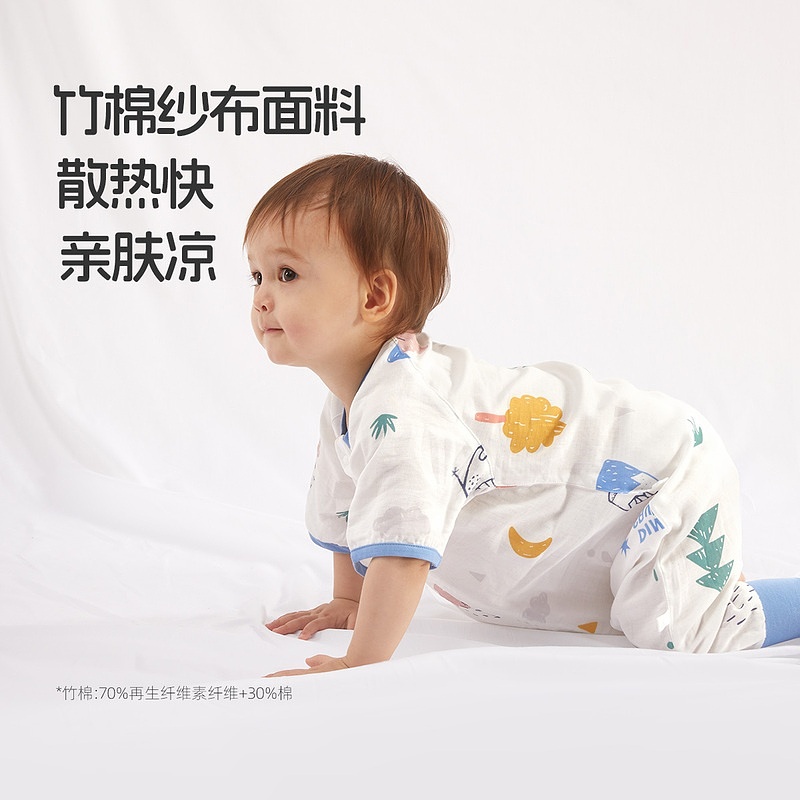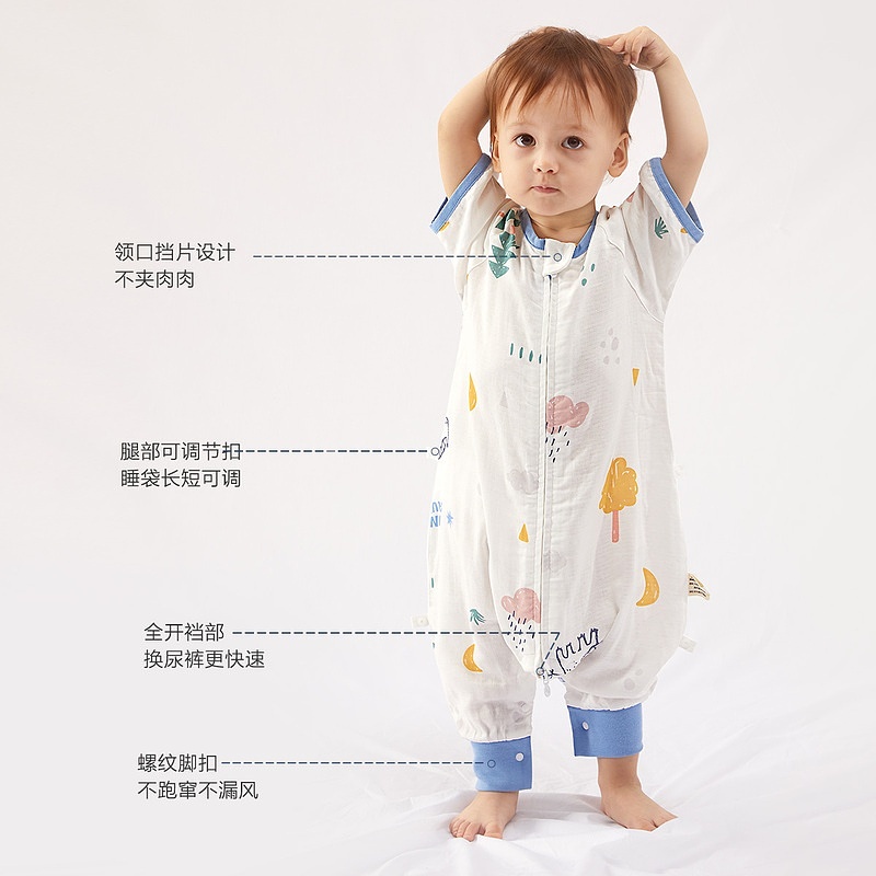 水星儿童婴儿睡袋分腿款抗菌A类春夏四季通用悦柔短袖纱布防踢被
