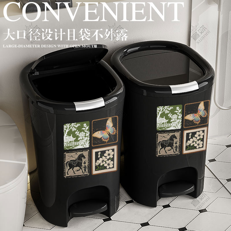 法式复古家用脚踏垃圾桶按压双开式带盖客厅厨房大容量脚踩垃圾桶