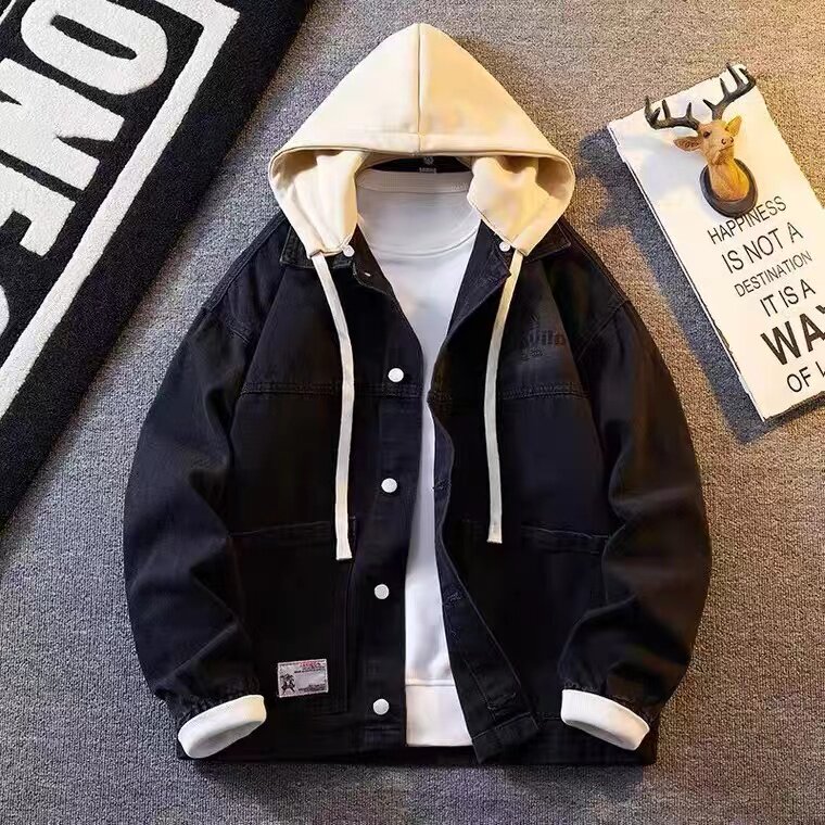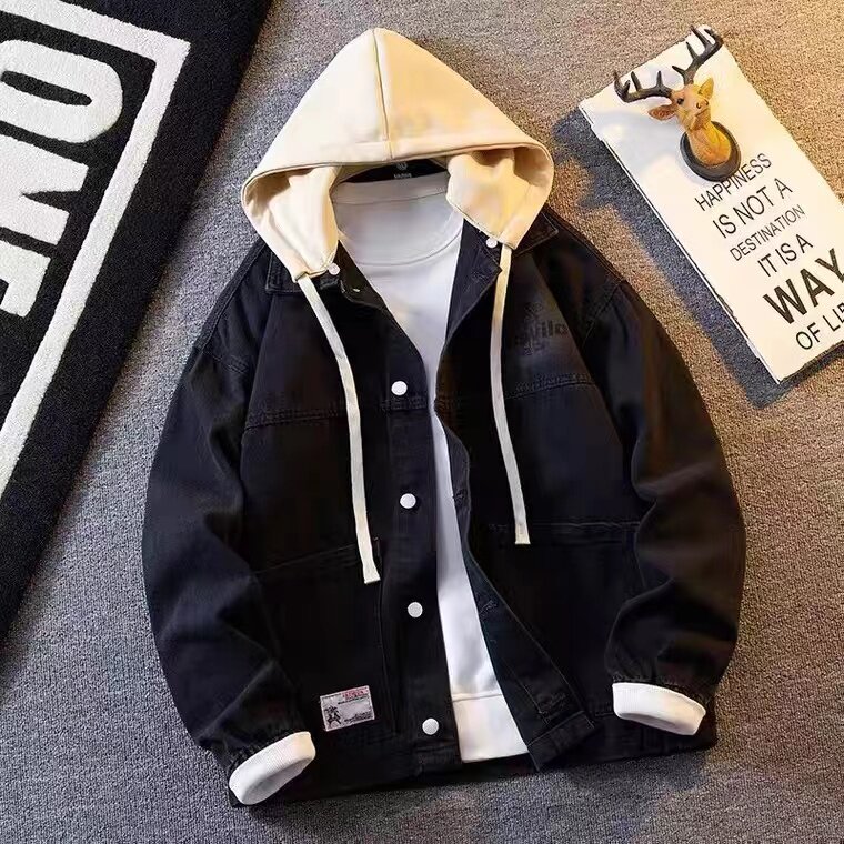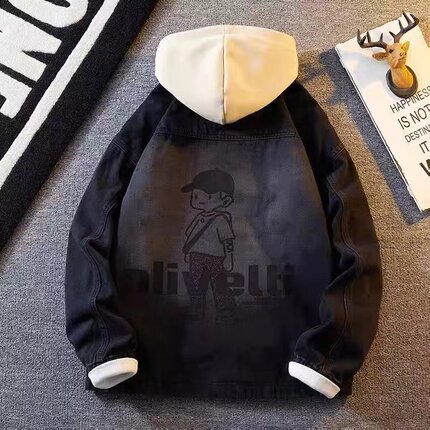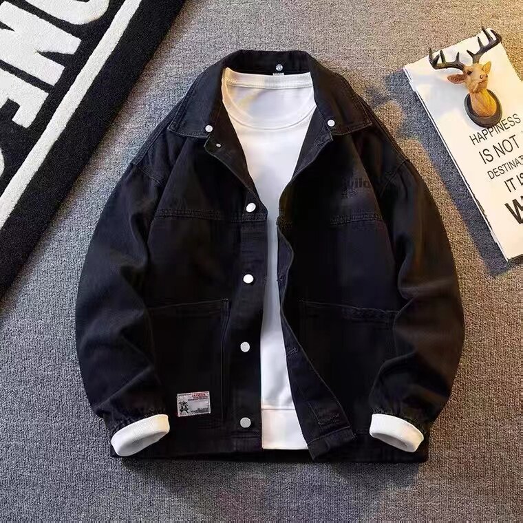 春秋季港风牛仔外套男韩版学生宽松百搭夹克青少年潮流工装上衣服