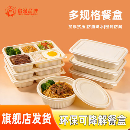 富强可降解一次性饭盒轻食快餐盒外卖打包盒食品级玉米淀粉便当盒