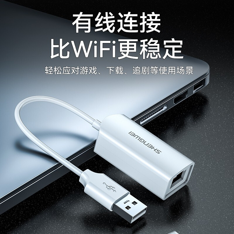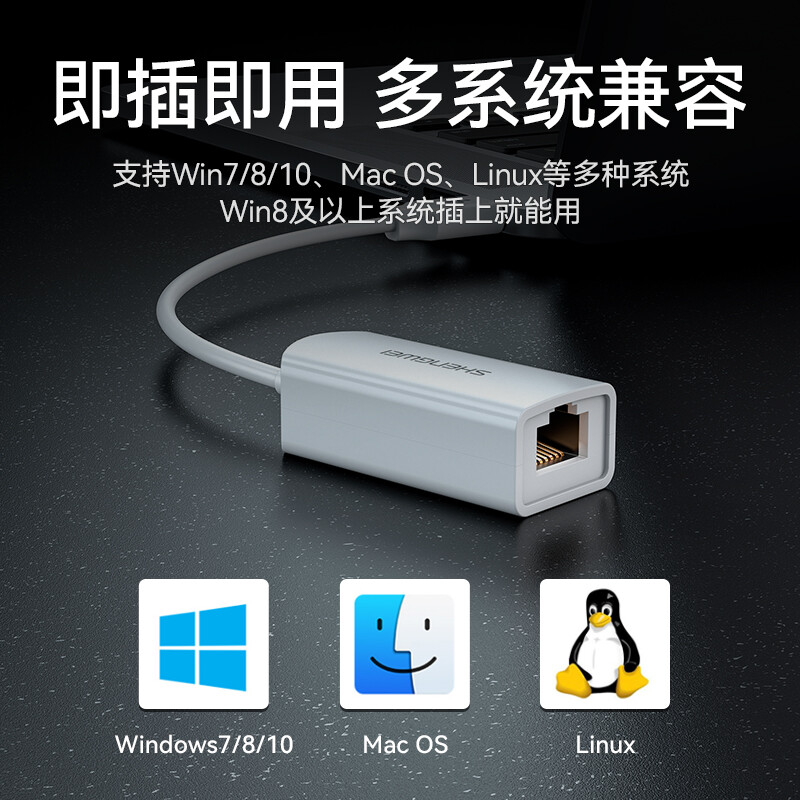 胜为usb转网口网线转接口千兆网卡台式机笔记本电脑有线转换器以太网免驱小米盒子typec宽带转换器UR-301W
