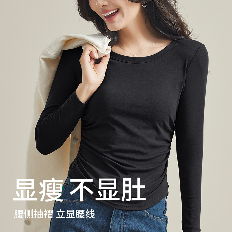 黑色打底衫女秋冬2025新款内搭圆领低领长袖修身显瘦T恤肌底上衣