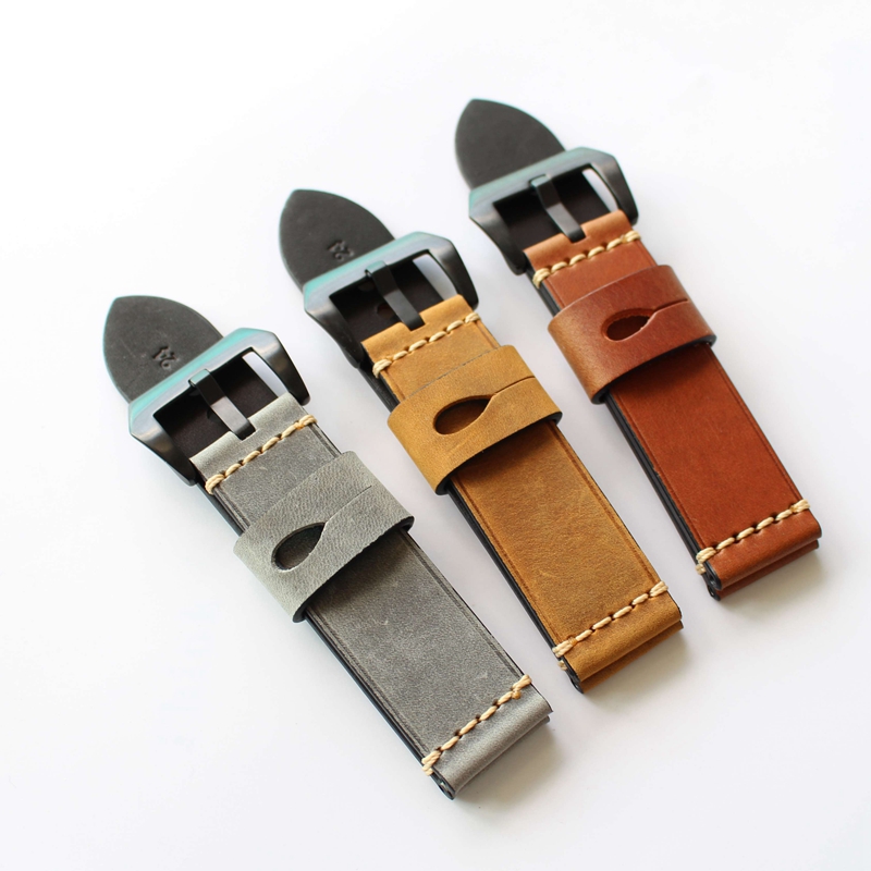 柔软牛皮表带20 22 24MM手工复古适配沛纳海精工华为GT男表带真皮