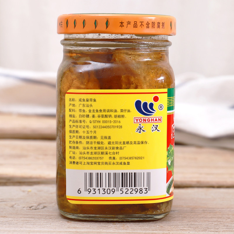 潮汕特产永汉带鱼咸鱼皇罐头210g下饭下粥杂咸佐餐杂咸