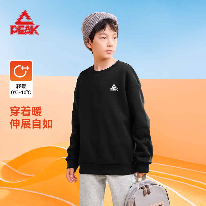 匹克童装女童加绒卫衣冬季大童运动上衣保暖一体绒儿童打底衫加厚