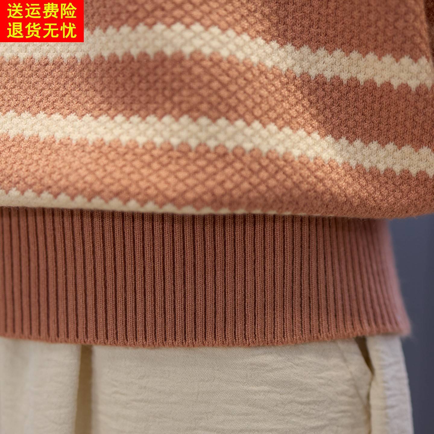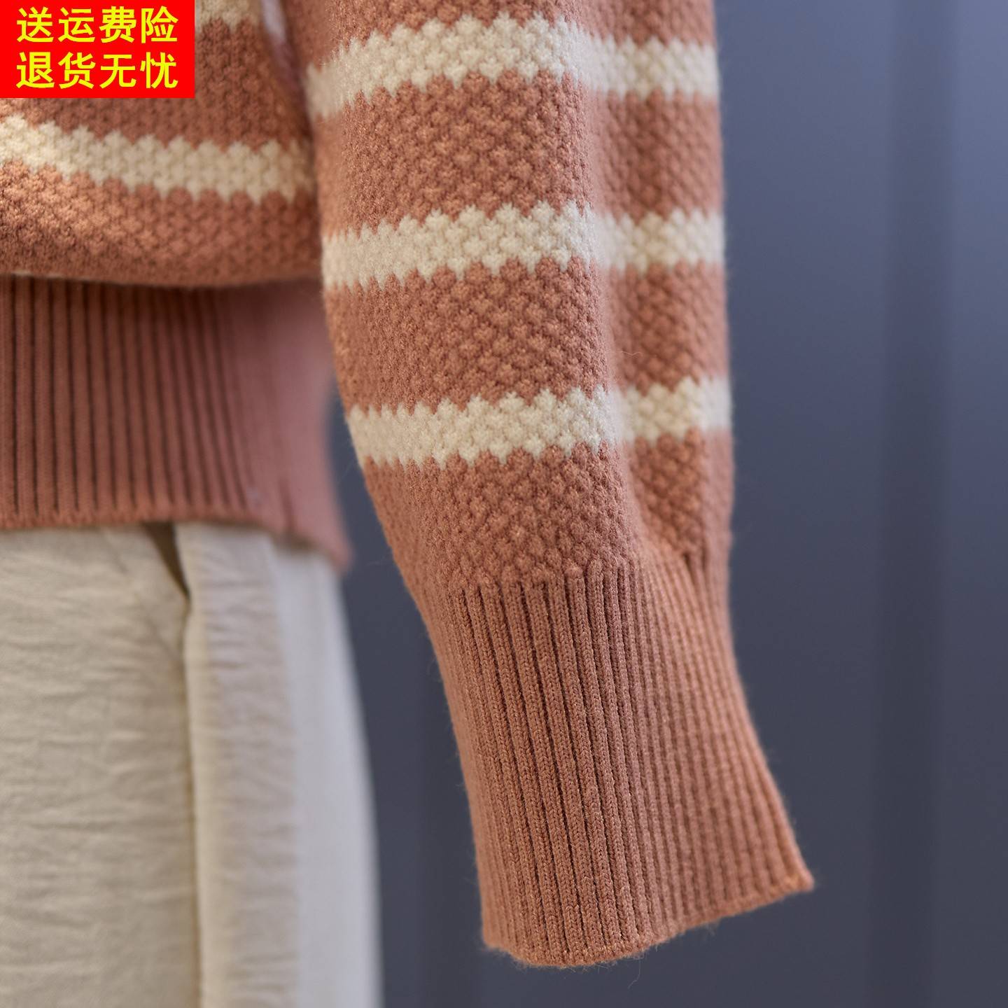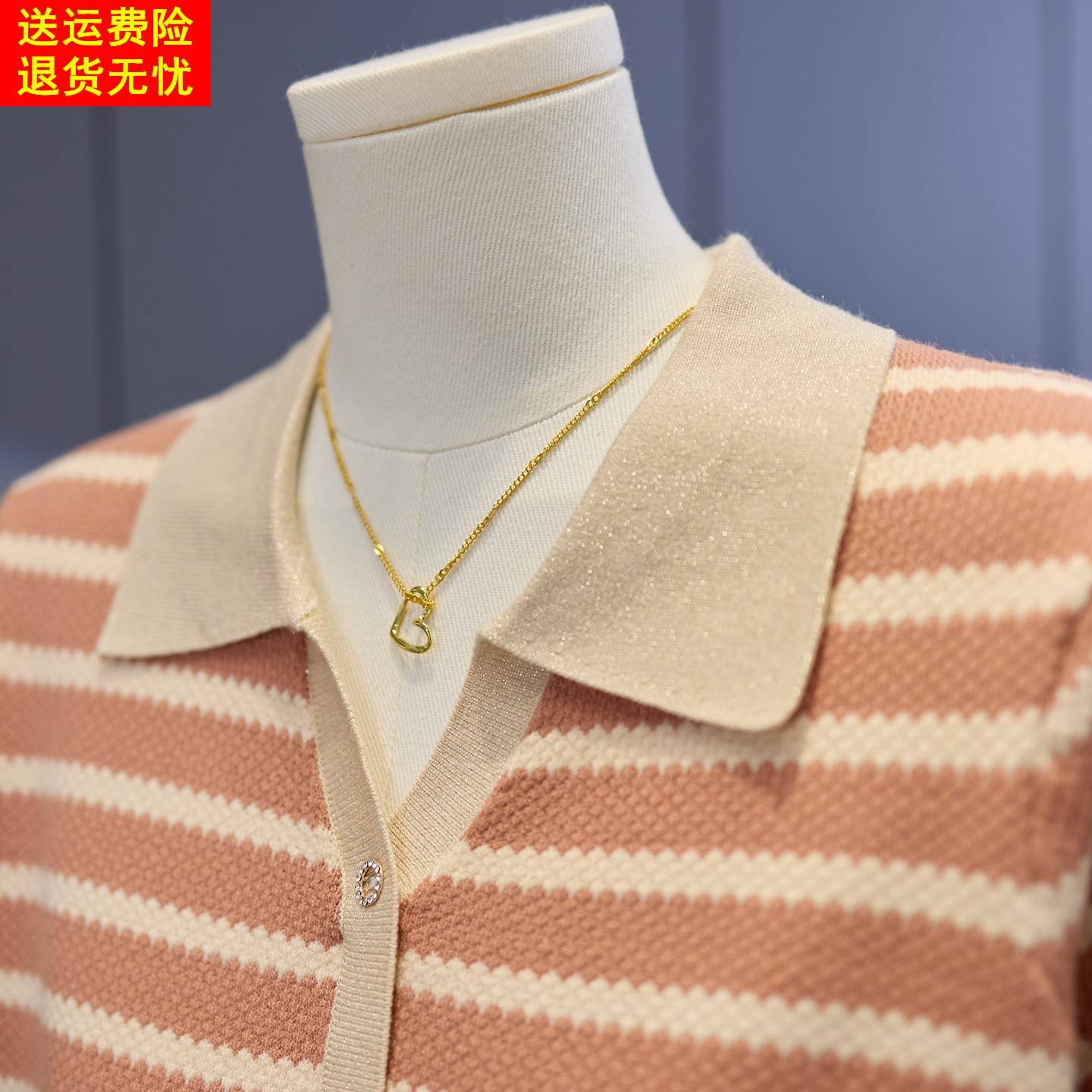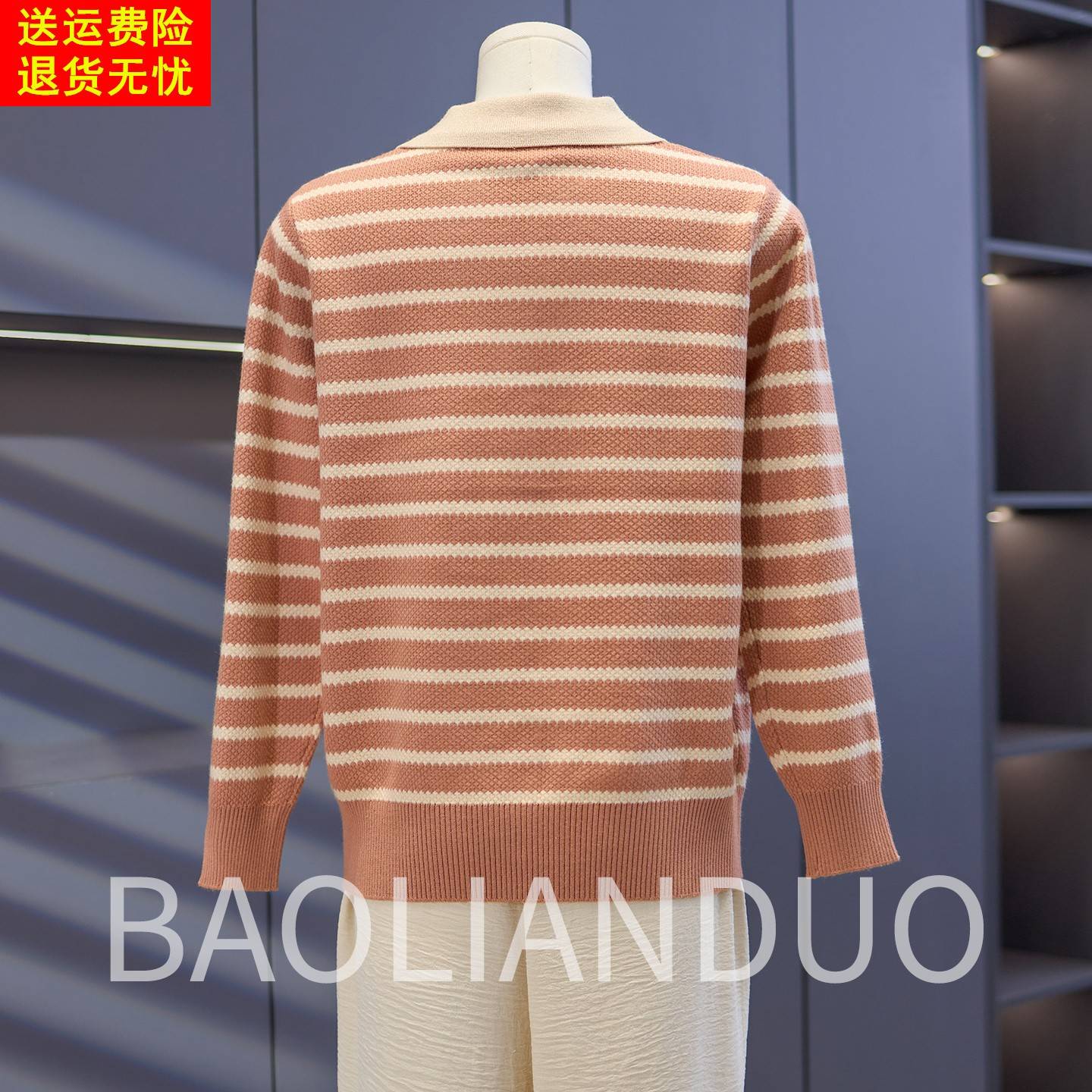 洋气妈妈秋装针织打底衫中年女装新款翻领上衣中老年春秋条纹小衫