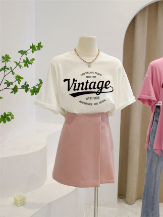 纯棉短袖t恤女夏季2025年新款美式复古宽松简约百搭女装上衣ins潮