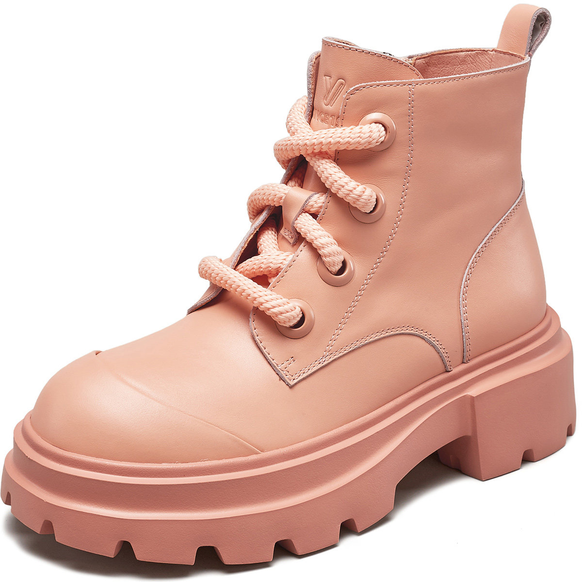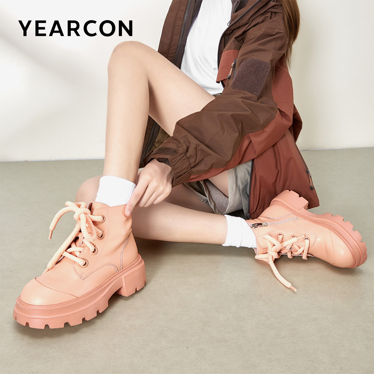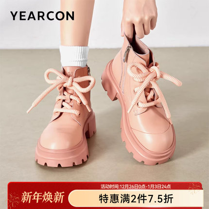 意尔康女鞋秋冬休闲马丁靴真皮粗跟单靴英伦厚底短靴女士大头皮鞋